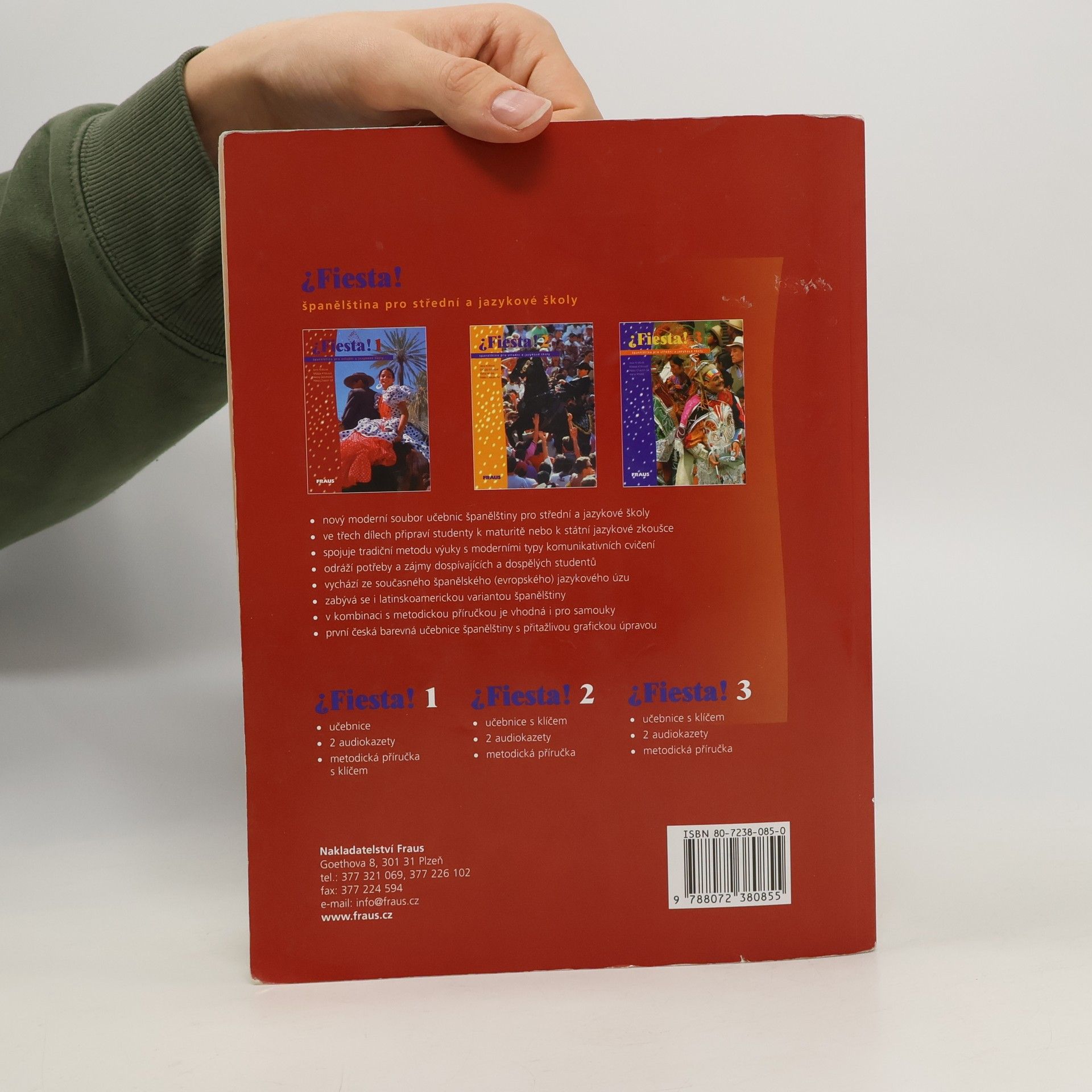 • nový moderní soubor učebnic španělštiny pro střední a jazykové školy• ve třech dílech připraví studenty k maturitě nebo k státní jazykové zkoušce• spojuje tradiční metodu výuky s moderními typy komunikativních cvičení• odráží potřeby a zájmy dospívajících a dospělých studentů• vychází ze současného španělského (evropského) jazykového úzu• zabývá se i latinskoamerickou variantou španělštiny• v kombinaci s metodickou příručkou je vhodná i pro samouky• první česká barevná učebnice španělštiny s přitažlivou grafickou úpravouPrvní díl je pro začátečníky. Jeho zvládnutí umožní studentům obstát v běžných situacích denního života ve španělsky mluvícím prostředí.Učebnice má 15 lekcí, každá se zabývá jedním ze základních konverzačních témat. Hlavní text lekce je dialogického charakteru, doplněný o barevné ilustrace a jednoduché autentické dokumenty. Za texty následuje slovní zásoba lekce a frazeologie. Na mluvnický výklad navazují tři bloky cvičení, která ověřují porozumění textům, fonetická cvičení a procvičují nové gramatické jevy. Repaso 1, 2 a 3 opakuje probranou látku.K učebnici jsou dále k dispozici samostatně 2 audiokazety.