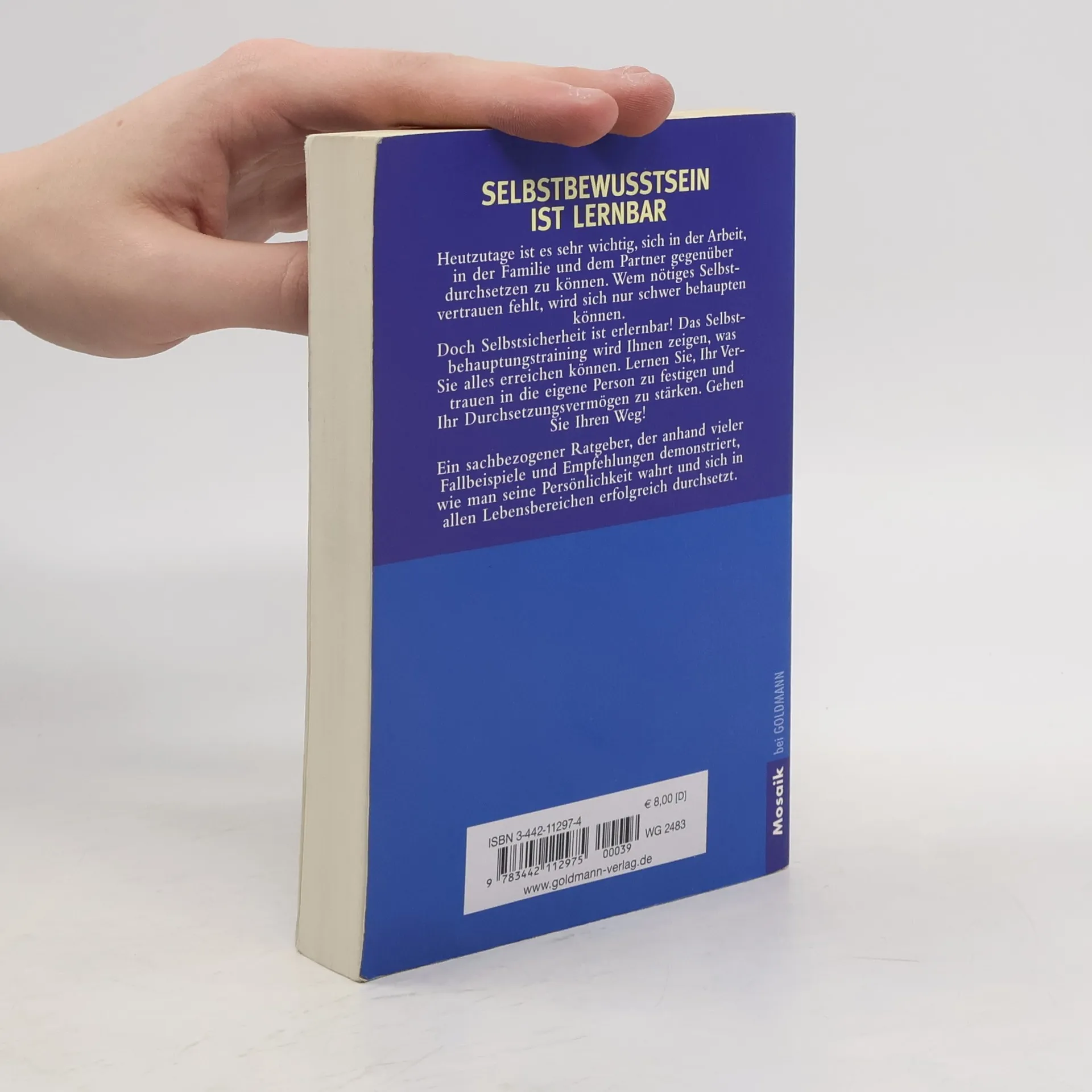 Seit Jahrzenten erfolgreich: das Standardwerk zum Thema Selbstbewusstsein Selbstsicherheit kann man lernen – mit dem Training des amerikanischen Psychotherapeuten Professor Herbert Fensterheim und der Journalistin Jean Baer. Das Programm, mit dem sie schon Millionen Menschen geholfen haben, demonstriert, wie man das Vertrauen in die eigene Person stärkt und sich durchsetzt – im Beruf, in der Liebe, im Familienkreis, in der Gesellschaft.