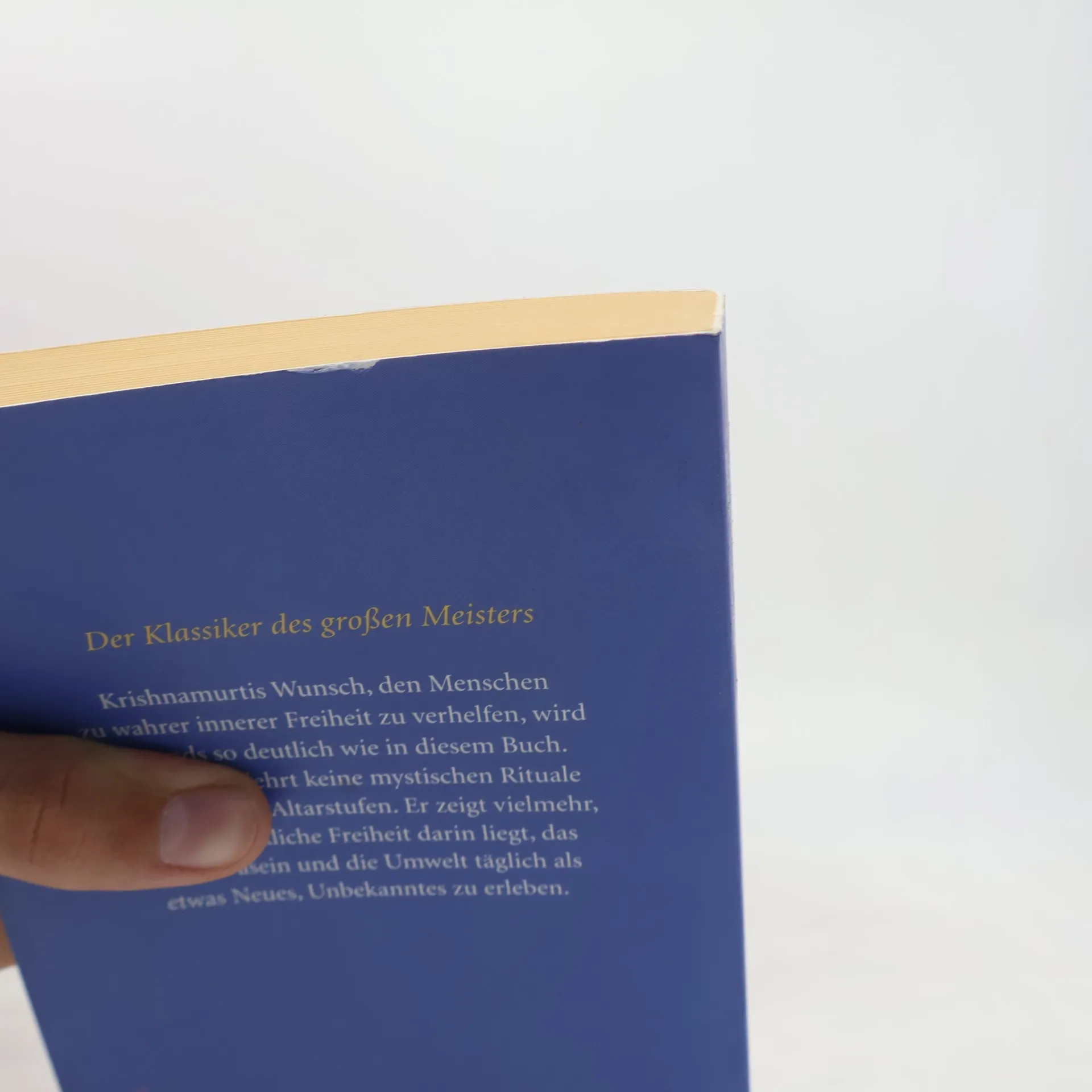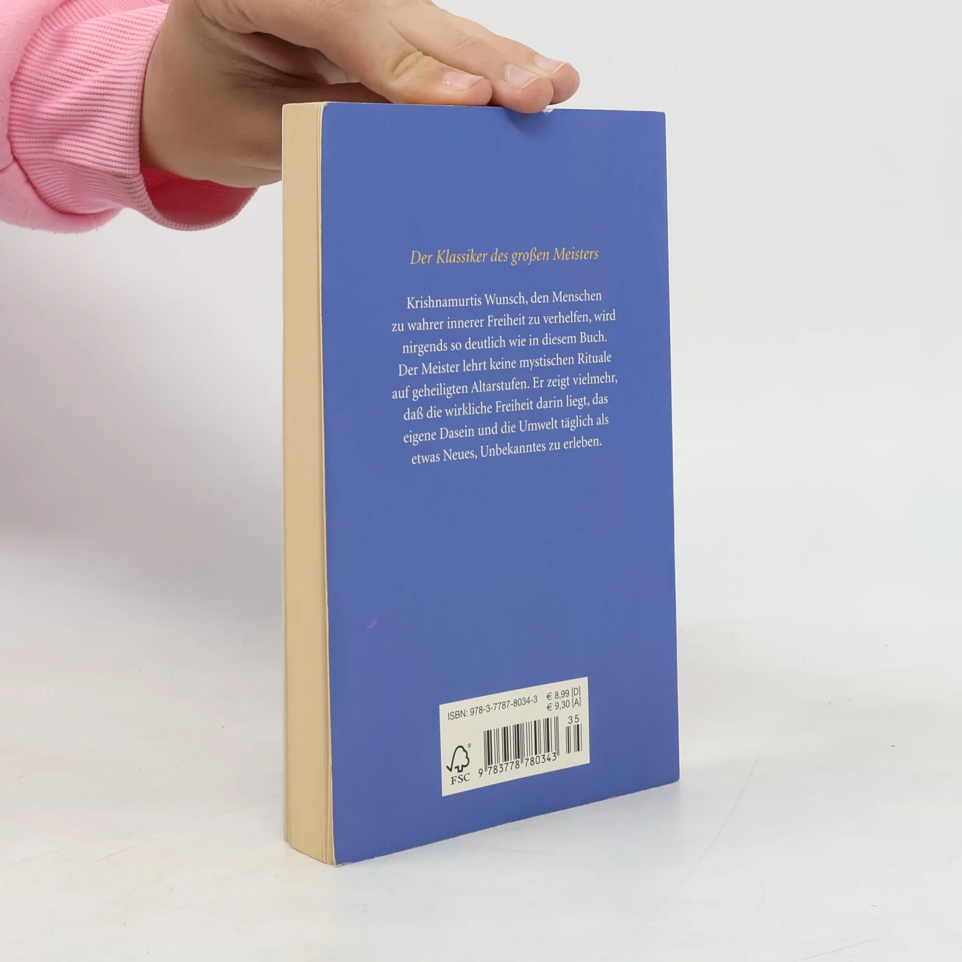 „Mein einziges Interesse besteht darin, den Menschen absolut, unbedingt frei zu machen.“ (Krishnamurti) Das Werk des großen indischen Meisters, das unter seinen vielen Werken die größte Verbreitung fand und die nachhaltigste Wirkung erzielte. In keinem seiner Werke wird Krishamurtis Wunsch, den Menschen zu innerer Freiheit zu verhelfen, so deutlich wie in diesem Buch. Wirkliche Freiheit bedeutet, jeden Tag als etwas Neues, Unbekanntes und Vollkommenes zu erleben. So ist der direkte Weg in die Freiheit immer auch der Weg ins Leben.