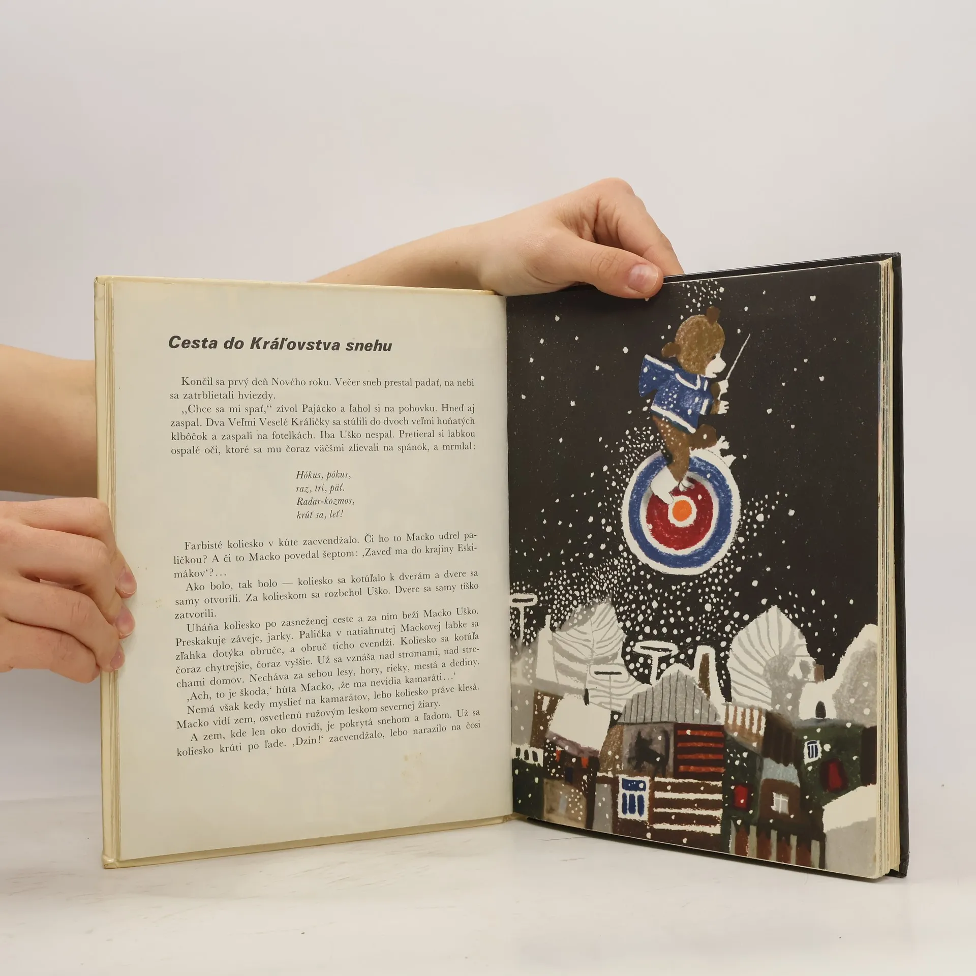 Príbeh o Mackovi Uškovi a jeho kamarátoch. Macko Uško dostal na nový rok čarovné koliesko. Stačí povedať len zaklínadlo a zavedie Macka Uška, kam bude chcieť. Na potulky za dobrodružstvami. Aby mal Macko čo porozprávať kamarátom a deťom...