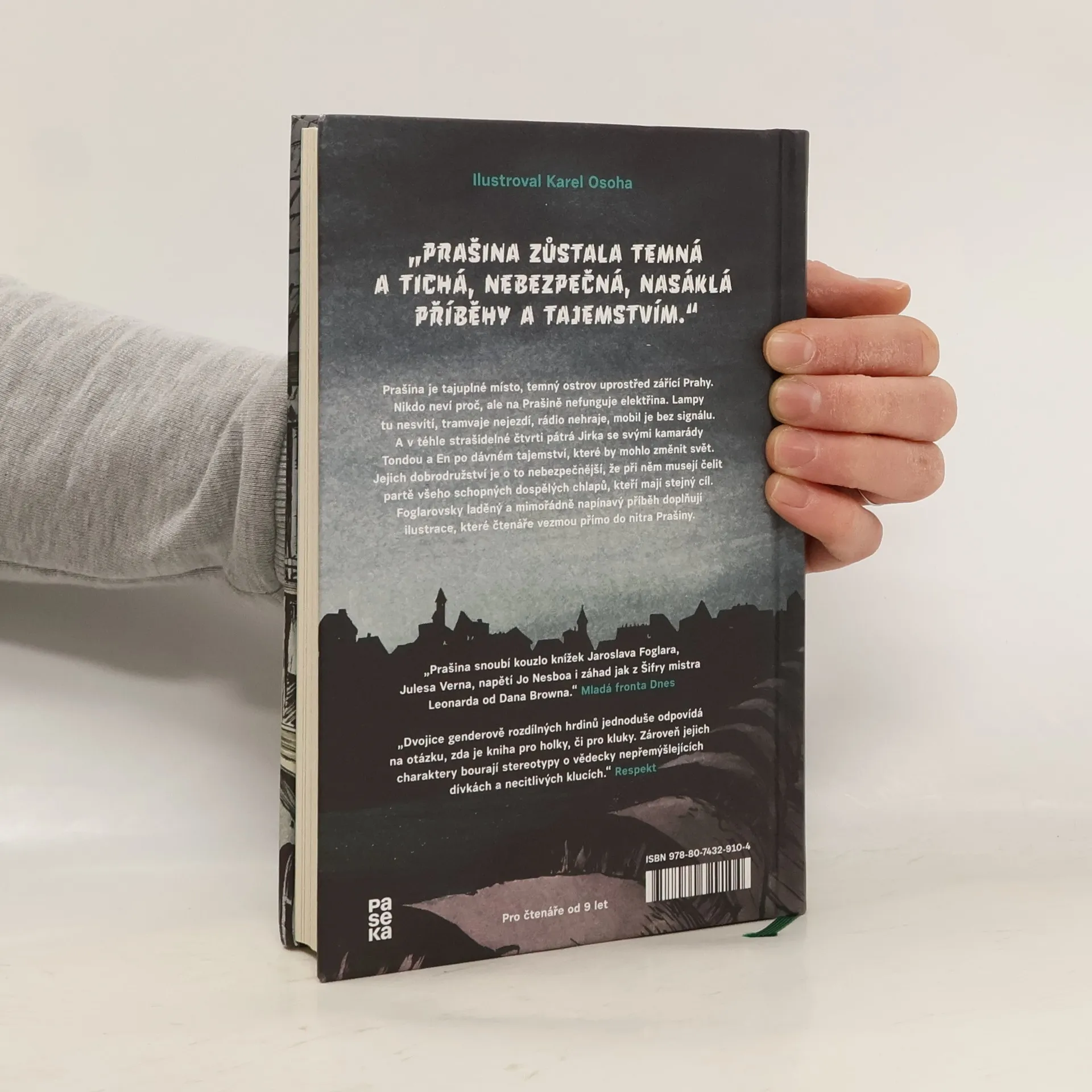 Prašina je tajuplné místo, temný ostrov uprostřed zářící Prahy. Nikdo neví proč, ale na Prašině nefunguje elektřina. Lampy tu nesvítí, tramvaje nejezdí, rádio nehraje, mobil je bez signálu. A v téhle strašidelné čtvrti pátrá Jirka se svými kamarády Tondou a En po dávném tajemství, které by mohlo změnit svět. Jejich dobrodružství je o to nebezpečnější, že při něm musejí čelit partě všeho schopných dospělých chlapů, kteří mají stejný cíl. Foglarovsky laděný a mimořádně napínavý příběh doplňují ilustrace, které čtenáře vezmou přímo do nitra Prašiny.