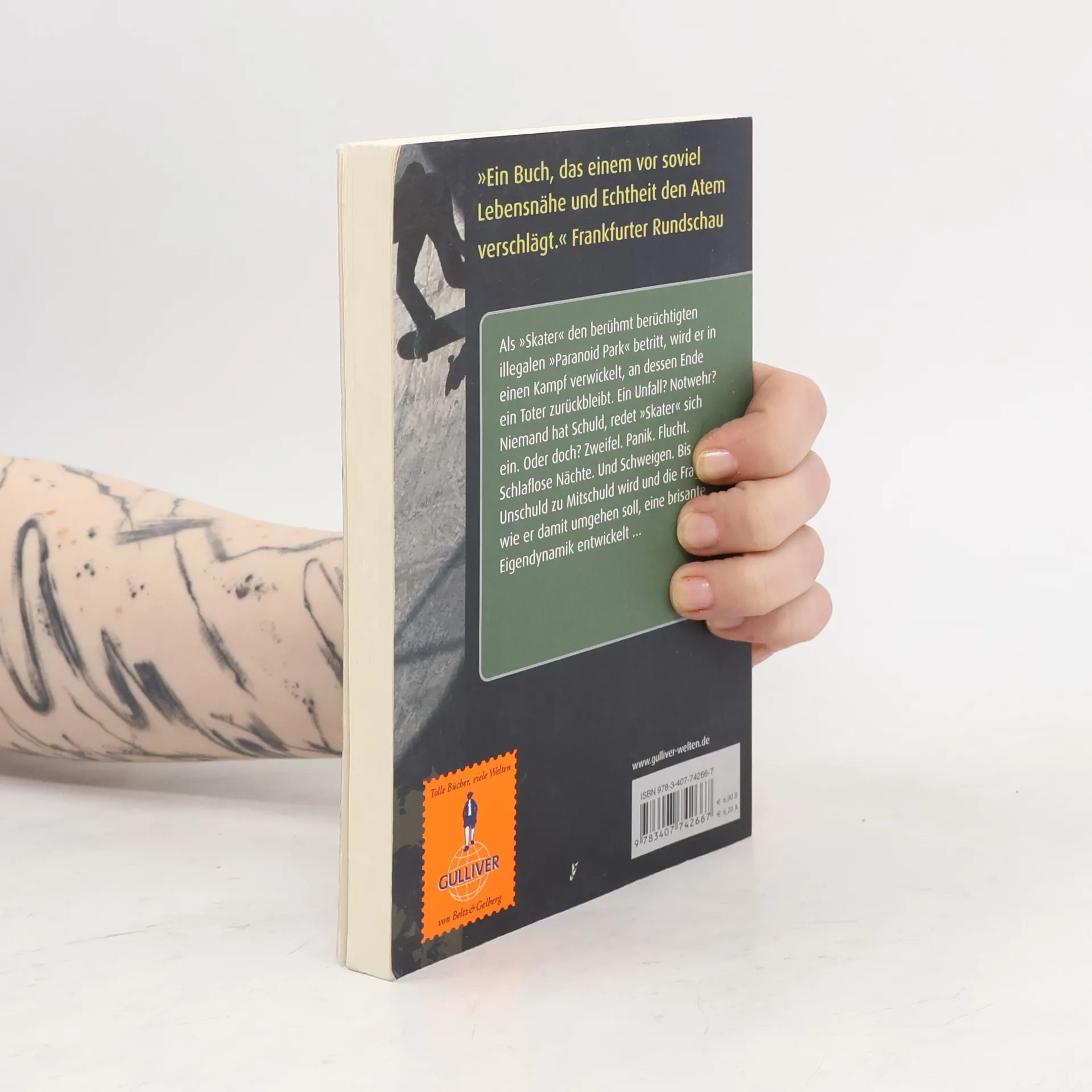 'Ein Buch, das einem vor soviel Lebensnähe und Echtheit den Atem verschlägt.' Frankfurter Rundschau Als „Skater“ den berühmt berüchtigten illegalen „Paranoid Park“ betritt, wird er in einen Kampf verwickelt, an dessen Ende ein Toter zurückbleibt. Ein Unfall, redet „Skater“ sich ein. Zumindest Notwehr. Und niemand hat Schuld. Oder doch? Zweifel. Panik. Flucht. Schlaflose Nächte. Sich jemandem anvertrauen wollen. Aber es siegt die Sprachlosigkeit. Der Gedanke: Vielleicht werde ich nicht geschnappt. Schweigen. Bis Unschuld zu Mitschuld wird und die Frage, wie er damit umgehen soll, eine brisante Eigendynamik entwickelt … Blake Nelson versetzt die Leser in innere Aufruhr: Eine Skater-Story über Schuld und Sühne, cool, schnell und knisternd vor Spannung.