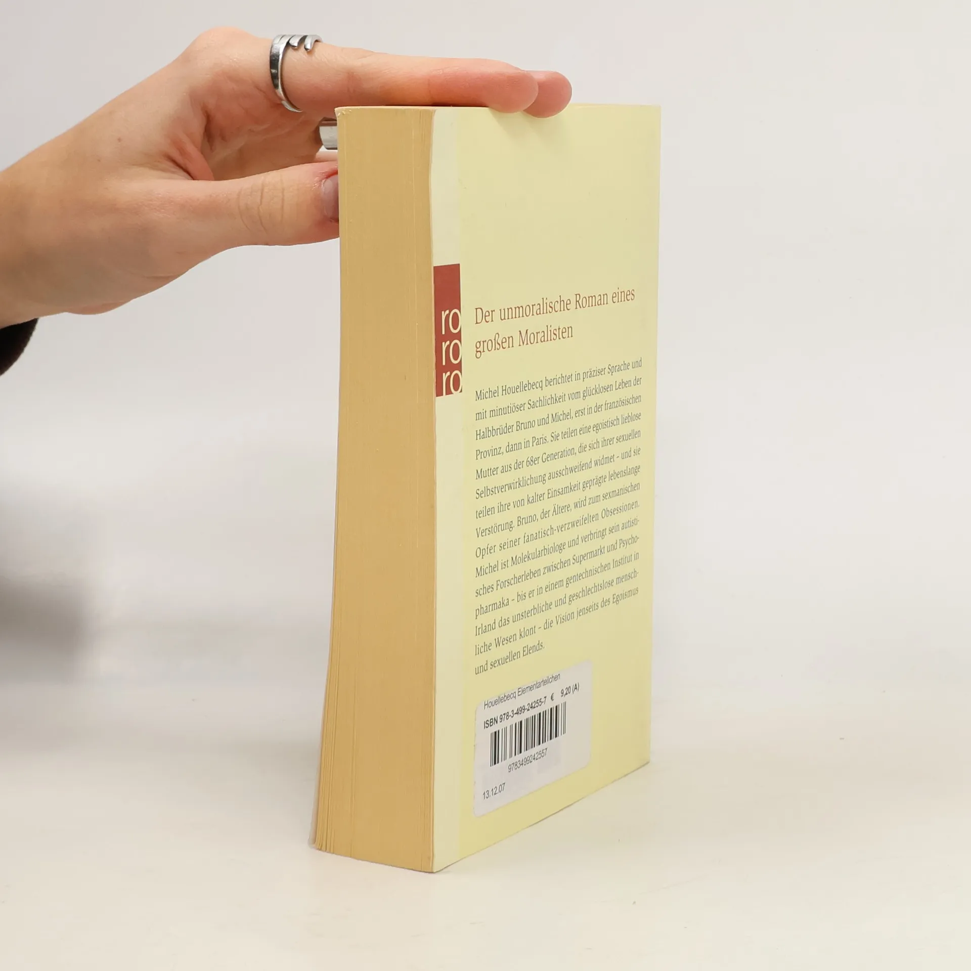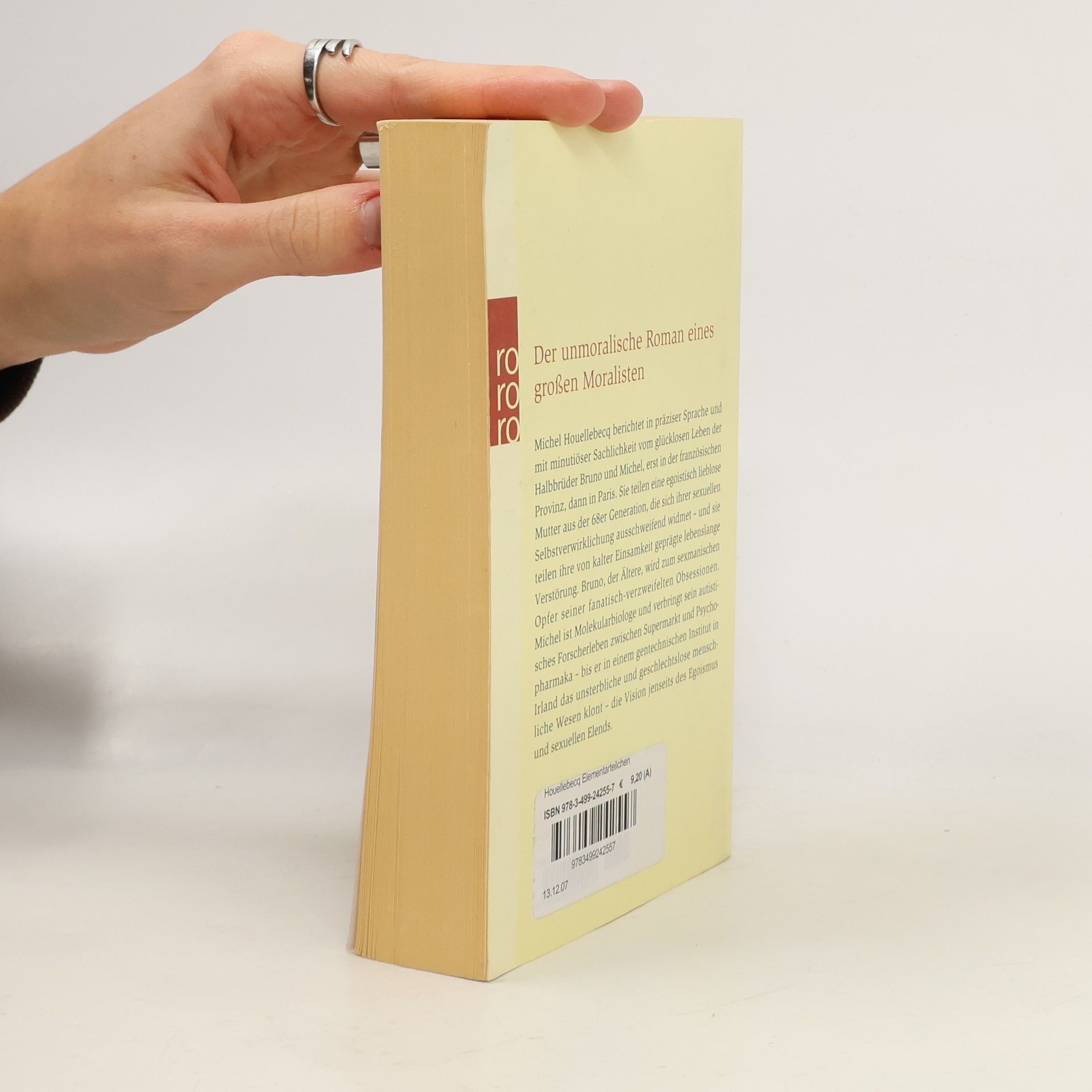 Der unmoralische Roman eines großen MoralistenMichel Houellebecq berichtet in präziser Sprache und mit minuziöser Sachlichkeit vom glücklosen Leben der Halbbrüder Bruno und Michel, erst in der französischen Provinz, dann in Paris. Sie teilen eine egoistisch lieblose Mutter aus der 68er Generation, die sich ihrer sexuellen Selbstverwirklichung ausschweifend widmet - und sie teilen ihre von kalter Einsamkeit geprägte lebenslange Verstörung. Bruno, der Ältere, wird zum sexmanischen Opfer seiner fanatisch-verzweifelten Obsessionen. Michel ist Molekularbiologe und verbringt sein autistisches Forscherleben zwischen Supermarkt und Psychopharmaka - bis er in einem gentechnischen Institut in Irland das unsterbliche und geschlechtslose menschliche Wesen klont - die Vision jenseits des Egoismus und sexuellen Elends.