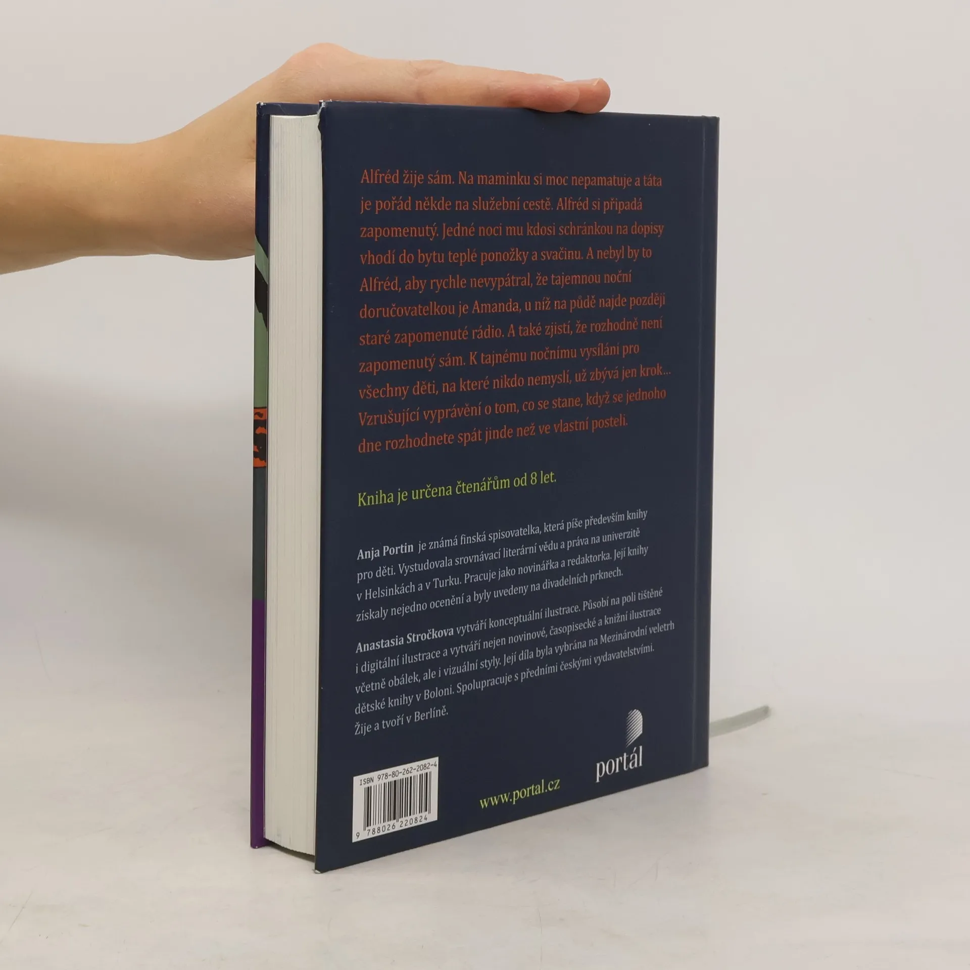 Alfréd žije sám. Na maminku si moc nepamatuje a táta je pořád někde na služební cestě. Připadá si zapomenutý, když tu mu jedné noci kdosi schránkou na dopisy vhodí do bytu teplé ponožky a svačinu. A nebyl by to Alfréd, aby rychle nevypátral, že tajemnou noční doručovatelkou je Amanda, u níž na půdě najde Alfréd později staré zapomenuté rádio. A také zjistí, že rozhodně není zapomenutý sám. K tajnému nočnímu vysílání pro všechny děti, na které nikdo nemyslí, už zbývá jen krok Vzrušující vyprávění o tom, co se stane, když se jednoho dne rozhodnete spát jinde než ve vlastní posteli. Kniha je určena čtenářům od 9 let. V roce 2020 kniha získala prestižní cenu Finlandia pro děti a mládež a dočkala se i divadelního zpracování.