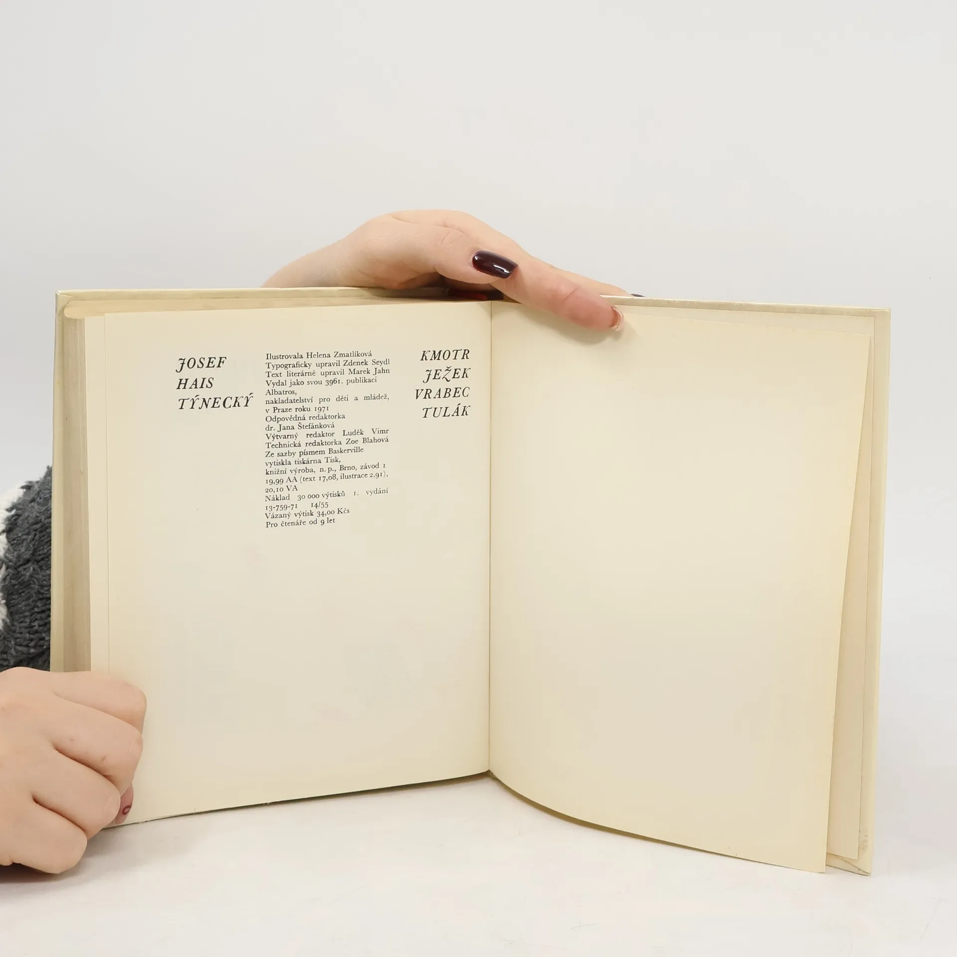 Kmotr ježek. Vrabec tulák, Josef Hais Týnecký, Helena Zmatlíková