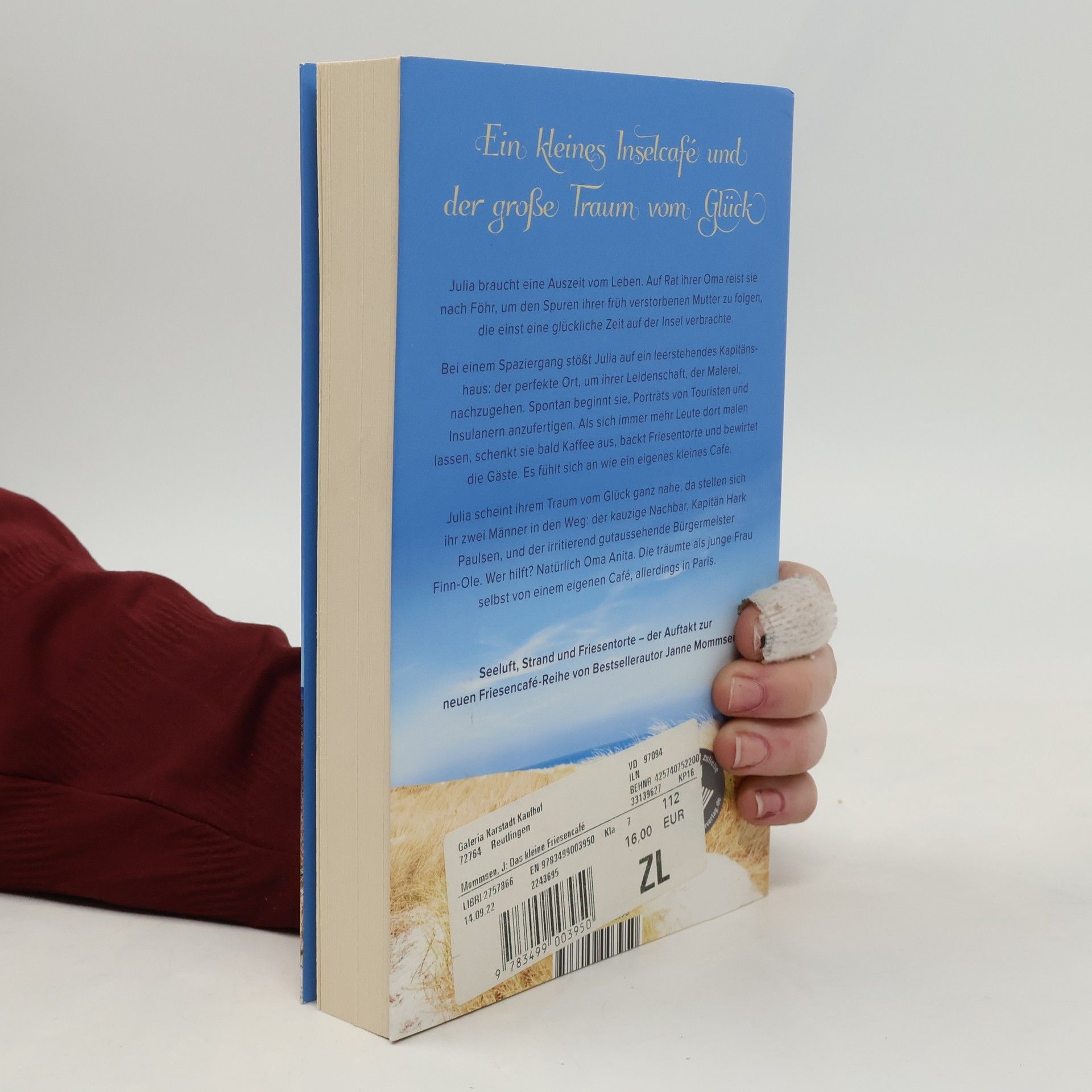 Seeluft, Strand und Friesentorte – der Auftakt zur neuen Friesencafé-Reihe von Bestsellerautor Janne Mommsen. Julia braucht eine Auszeit vom Leben. Auf Rat ihrer Oma reist sie nach Föhr, um den Spuren ihrer früh verstorbenen Mutter zu folgen, die einst eine glückliche Zeit auf der Insel verbrachte. Bei einem Spaziergang stößt Julia auf ein leerstehendes Kapitänshaus: der perfekte Ort, um ihrer Leidenschaft, der Malerei, nachzugehen. Spontan beginnt sie, Porträts von Touristen und Insulanern anzufertigen. Als sich immer mehr Leute dort malen lassen, schenkt sie bald Kaffee aus, backt Friesentorte und bewirtet die Gäste. Es fühlt sich an wie ein eigenes kleines Café. Julia scheint ihrem Traum vom Glück ganz nahe, da stellen sich ihr zwei Männer in den Weg: der kauzige Nachbar, Kapitän Hark Paulsen, und der irritierend gutaussehende Bürgermeister Finn-Ole. Wer hilft? Natürlich Oma Anita. Die träumte als junge Frau selbst von einem eigenen Café, allerdings in Paris.