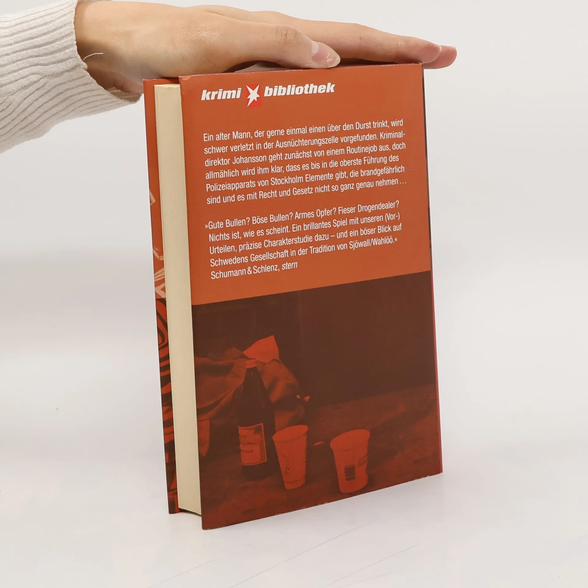 Ein harmloser alter Mann wird schwer verletzt in der Ausnüchterungszelle der Stockholmer Polizei vorgefunden. Wurde er misshandelt? Der Kriminaldirektor hält das Ganze zunächst für einen Routinejob. Erst allmählich wird ihm klar, dass es Elemente bei der Polizei gibt, die brandgefährlich sind. Ausgezeichnet mit dem Schwedischen Krimipreis.