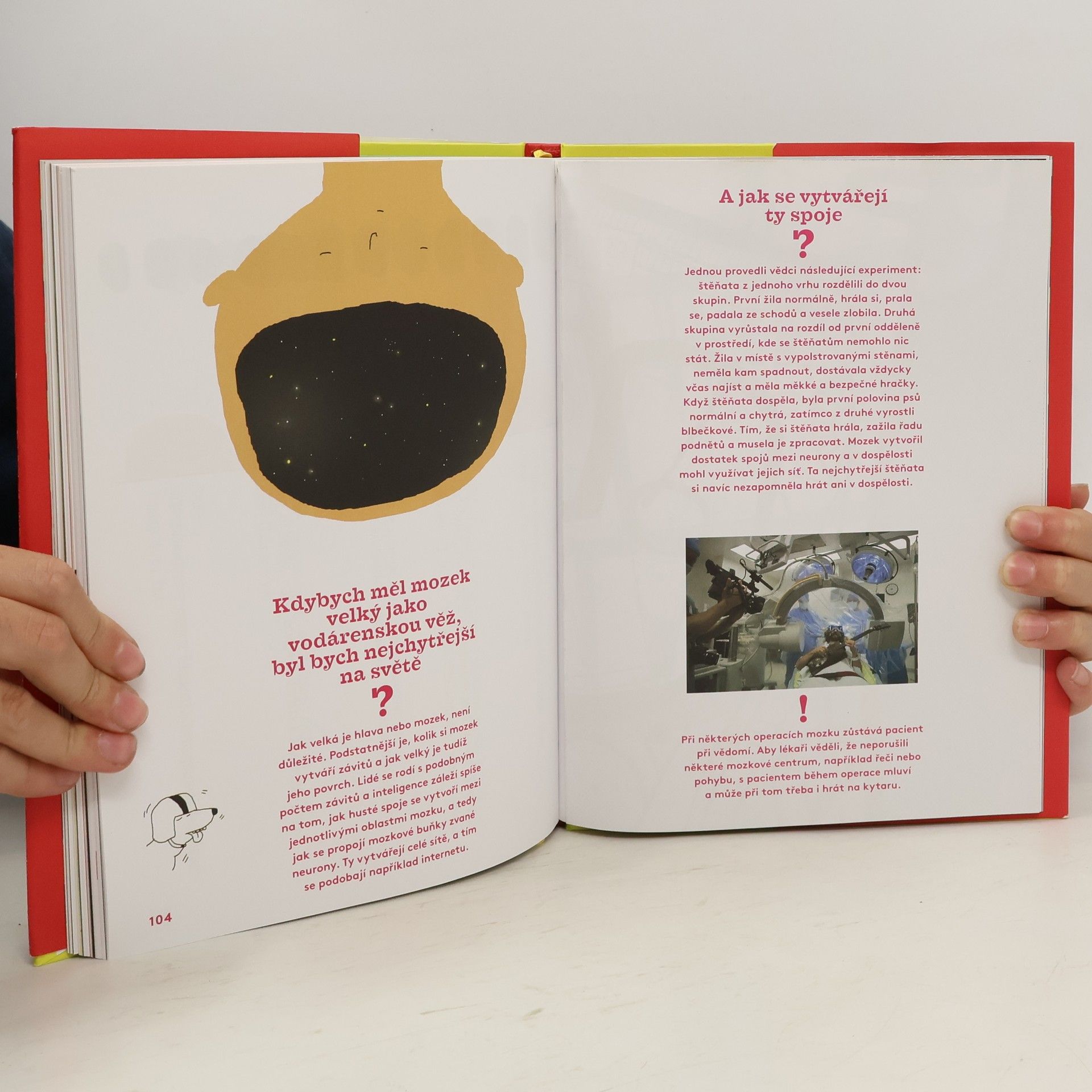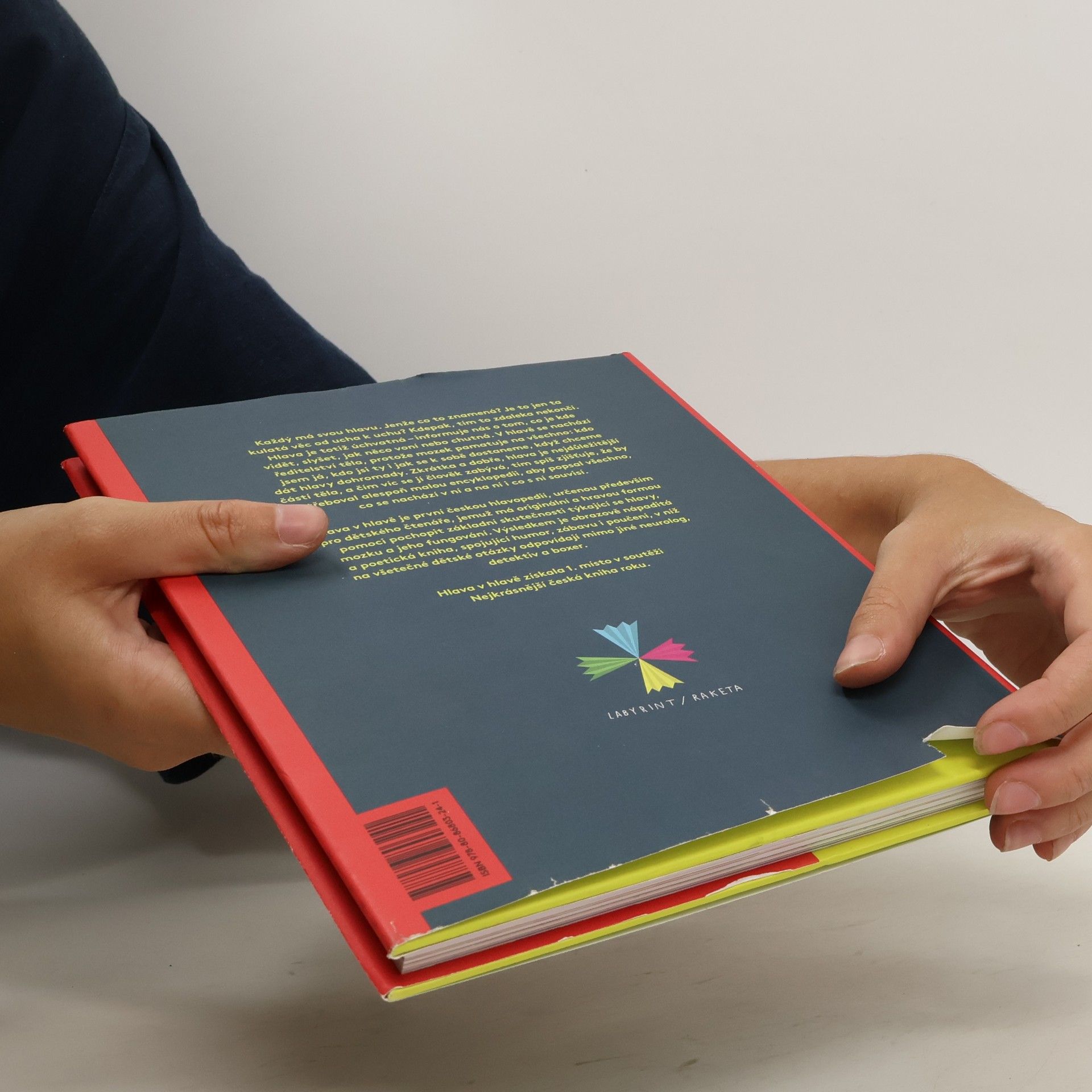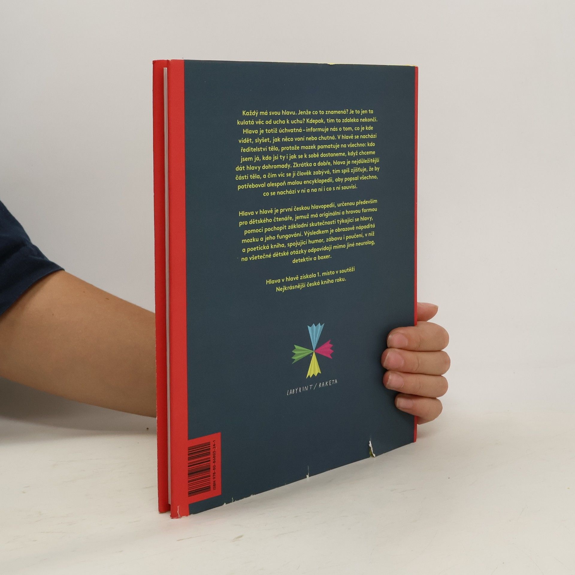 Každý má svou hlavu. Jenže co to znamená? Je to jen ta kulatá věc od ucha k uchu? Kdepak, tím to zdaleka nekončí. Hlava je totiž úchvatná – informuje nás o tom, co je kde vidět, slyšet, jak něco voní nebo chutná. V hlavě se nachází ředitelství těla, protože mozek pamatuje na všechno: kdo jsem já, kdo jsi ty i jak se k sobě dostaneme, když chceme dát hlavy dohromady. Zkrátka a dobře, hlava je nejdůležitější částí těla a čím víc se jí člověk zabývá, tím spíš zjišťuje, že by potřeboval alespoň malou encyklopedii, aby popsal všechno, co se nachází v ní a na ní i co s ní souvisí. Hlava v hlavě je nevšední a originální publikací, první českou hlavopedií, určenou především pro dětského čtenáře, jemuž má nápaditou a hravou vizuální formou pomoci pochopit základní skutečnosti týkající se hlavy, mozku a jeho fungování. Výsledkem je vizuálně nápaditá a poetická kniha, spojující humor, zábavu i poučení, v níž na všetečné dětské otázky odpovídají nejen neurolog, boxer či detektiv.