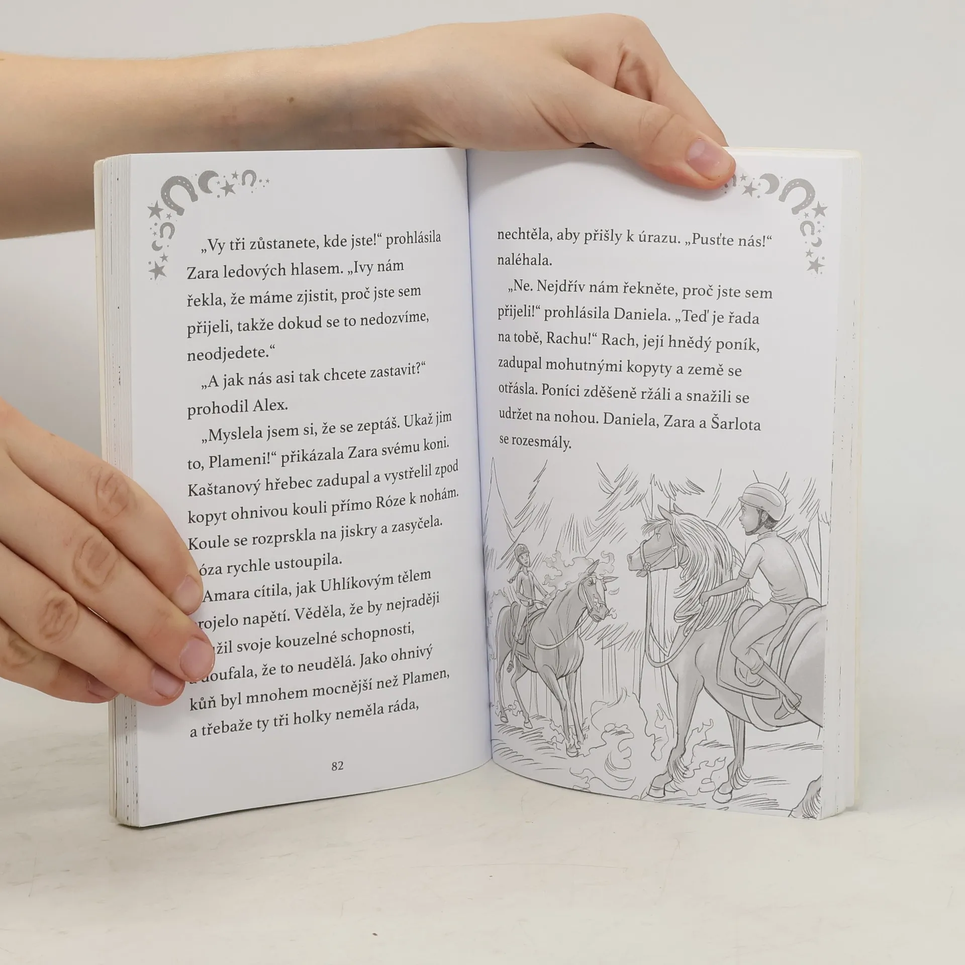 Pokračování dobrodružného fantasy příběhu o přátelství, krásných koních a mocné magii. Do jezdecké školy začne chodit Amařina nejlepší kamarádka Kamila. Amara se snaží za každou cenu udržet tajemství zdejších poníků, ale trápí ji, že ke kamarádce nemůže být upřímná. Když se ale v blízkosti stájí jednoho dne objeví vyděšený bouřkový kůň, je Kamila jediná, kdo ho dokáže uklidnit. Nakladatelská anotace. Kráceno.