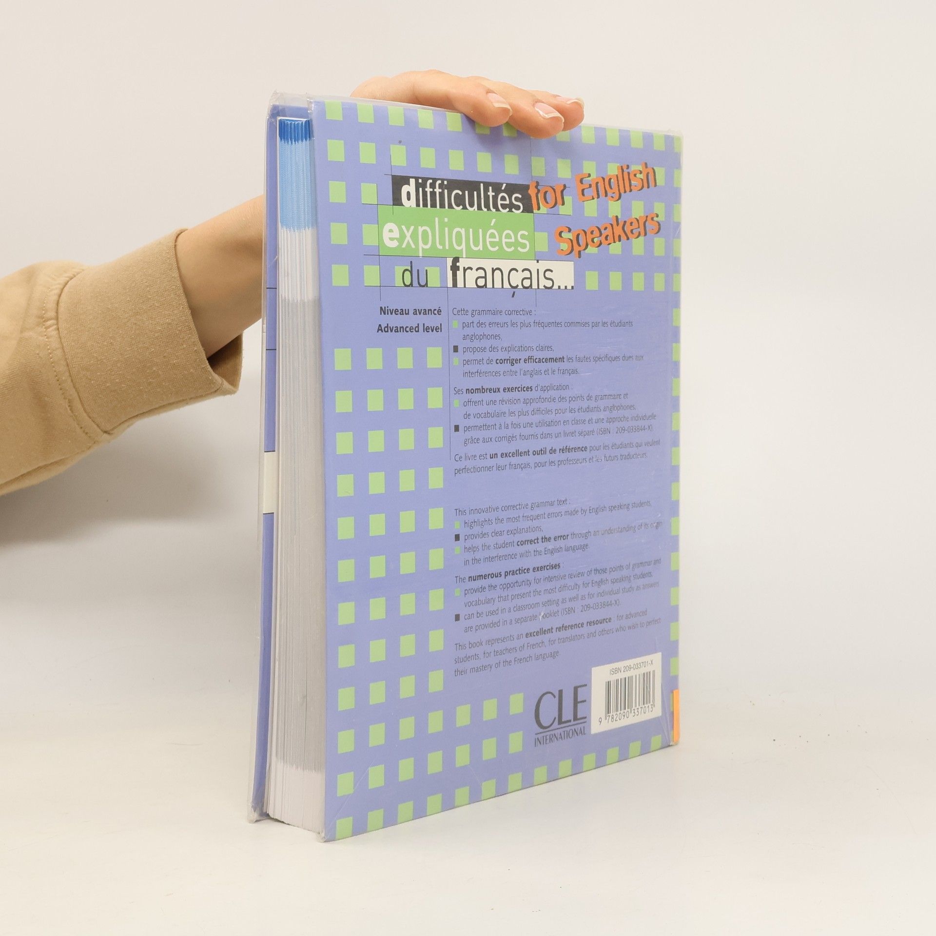 Ouvrage de Grammaire destiné aux anglophones en français langue étrangère (FLE), dans la collection Expliquée , pour grands adolescents et adultes.Cet ouvrage part des erreurs typiques commises par les étudiants vivant dans un milieu anglophone. Il est le fruit d'une expérience de vingt ans dans deux universités nord-américaines et développe les points de grammaire les plus difficilement assimilés en montrant, par des exemples et des exercices, comment les corriger.La présentation des difficultés facilite les recherches des éles points de grammaire sont regroupés d'une façon cohérente en chapitres qui reprennent les grandes catégories grammaticales;les phrases clé des sommaires placées en tête de chaque chapitre annoncent clairement les questions qui sont abordées;la numérotation des différents points grammaticaux étudiés permet de cerner avec précision l'erreur mentionnée et le système des renvois permet de faire des analyses précises tout en tenant compte de la complexité du langageLes corrigés sont disponible séparemment (978-209-033844-7).Les auteurs vous la présentent en vidéo :