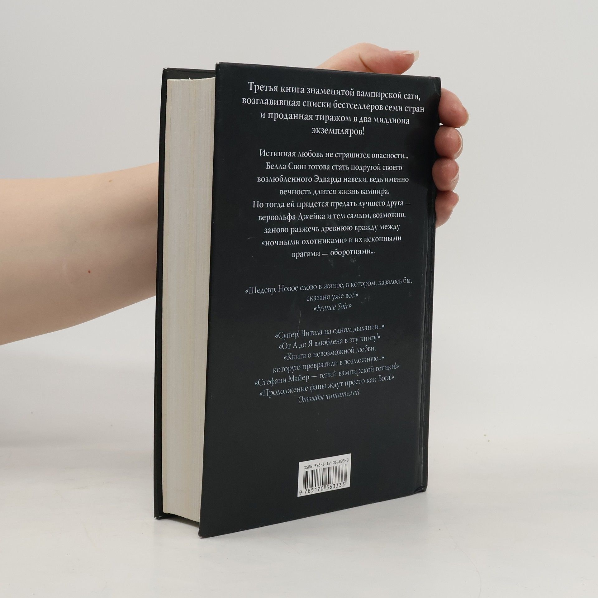 Третья книга знаменитой вампирской саги, возглавившая списки бестселлеров семи стран и проданная тиражом в два миллиона экземпляров. Истинная любовь не страшится опасности… Белла Свон готова стать подругой своего возлюбленного Эдварда навеки, ведь именно вечность длится жизнь вампира. Но тогда ей придется предать лучшего друга – вервольфа Джейка и тем самым, возможно, заново разжечь древнюю вражду между "ночными охотниками" и их исконными врагами – оборотнями…