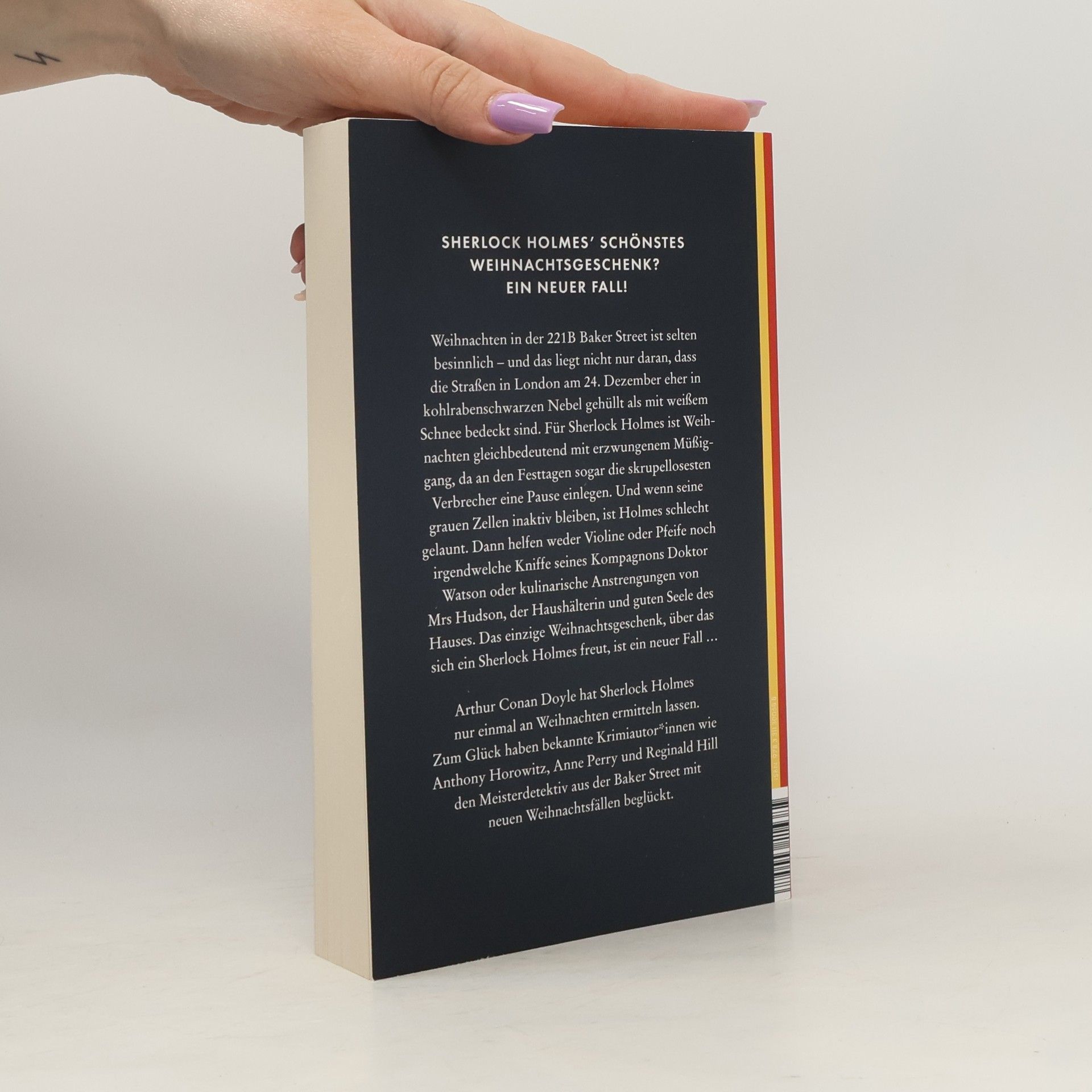 Weihnachten in der Baker Street 221B ist selten besinnlich – und das liegt nicht nur daran, dass die Straßen in London am 24. Dezember eher in kohlrabenschwarzen Nebel gehüllt als mit weißem Schnee bedeckt sind. Für Sherlock Holmes ist Weihnachten gleichbedeutend mit erzwungenem Müßiggang, da an den Festtagen sogar die skrupellosesten Verbrecher eine Pause einlegen. Und wenn seine grauen Zellen inaktiv bleiben, ist Holmes schlecht gelaunt. Dann helfen weder Violine oder Pfeife noch irgendwelche Kniffe seines Kompagnons Doktor Watson oder kulinarische Anstrengungen von Mrs Hudson, der Haushälterin und guten Seele des Hauses. Das einzige Weihnachtsgeschenk, über das sich ein Sherlock Holmes freut, ist ein neuer Fall …