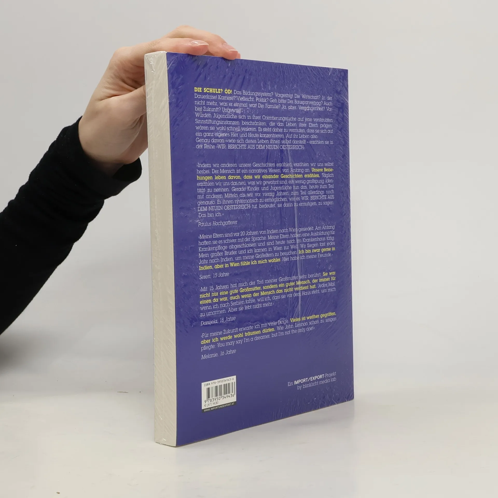 DIE SCHULE? ÖD! Das Bildungssystem? Vorgestrig! Die Wirtschaft? In der Dauerkrise! Karriere? Vielleicht. Politik? Geh bitte! Der Bausparvertrag? Auch nicht mehr, was er einmal war! Die Familie? Ja, aber. Vergangenheit? Vorbei! Zukunft? Ungewiss! Würden Jugendliche sich in ihrer Orientierungssuche auf jene verstaubten Sinnstiftungsinstanzen beschränken, die das Leben ihrer Eltern prägen, wären sie wohl schnell verloren. Es steht daher zu vermuten, dass sie sich auf ein ganz eigenes Hier und Heute konzentrieren. Auf ihr Leben also. Genau davon – wie sich dieses Leben ihnen selbst darstellt – erzählen sie in der Reihe »WIR. BERICHTE AUS DEM NEUEN OESTERREICH«.