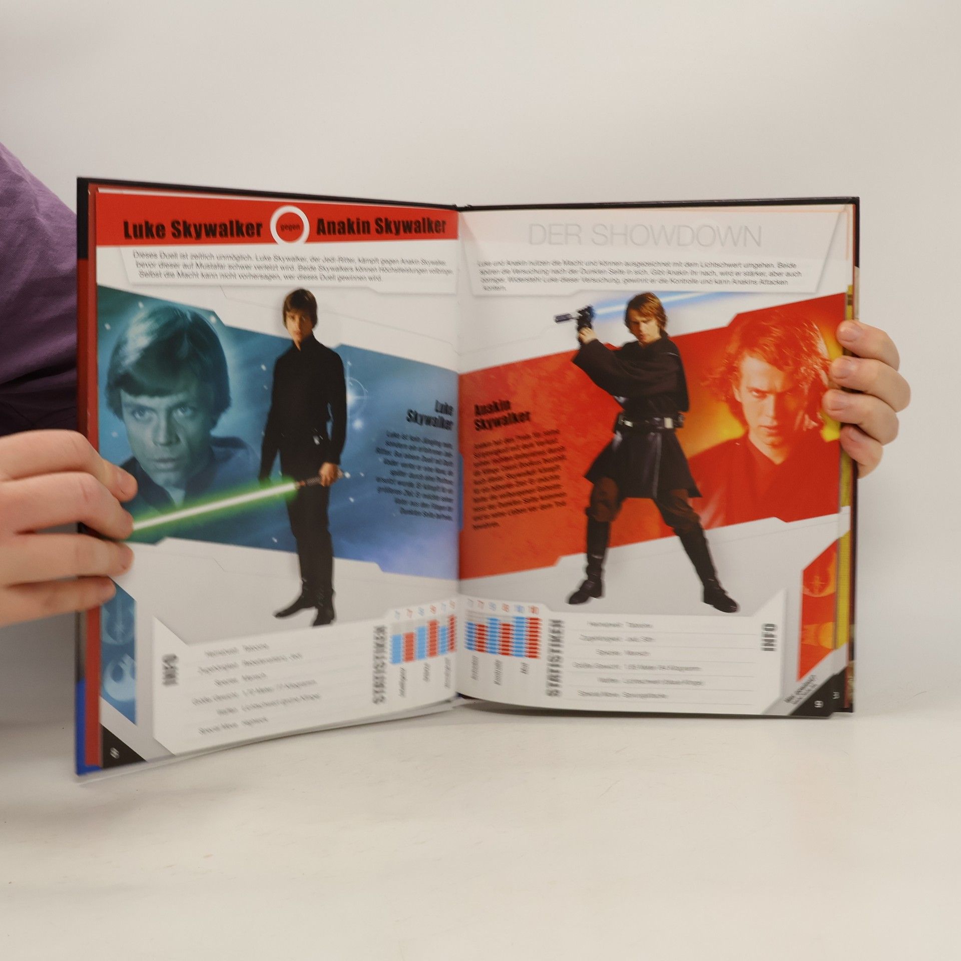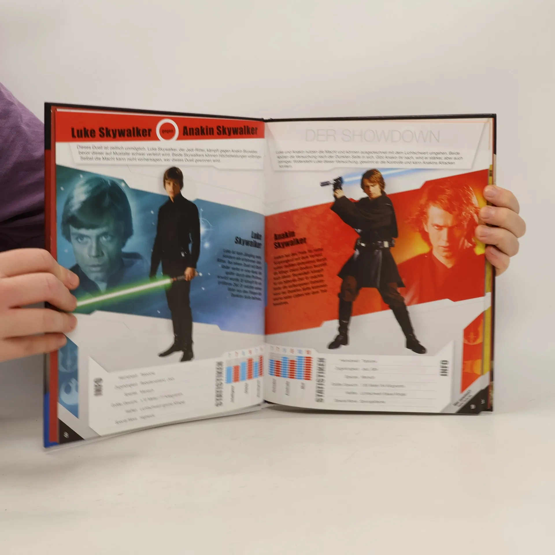 Foto-Filmbuch mit fiktiven Duellen von grössenteils jeweils einem Gegner der Jedi- (guten) und Sith- (schlechten) Seite, die Duelle haben so jedoch nicht stattgefunden. Wer würde anhand seiner Fähigkeiten als Sieger hervorgehen? Ab 10.