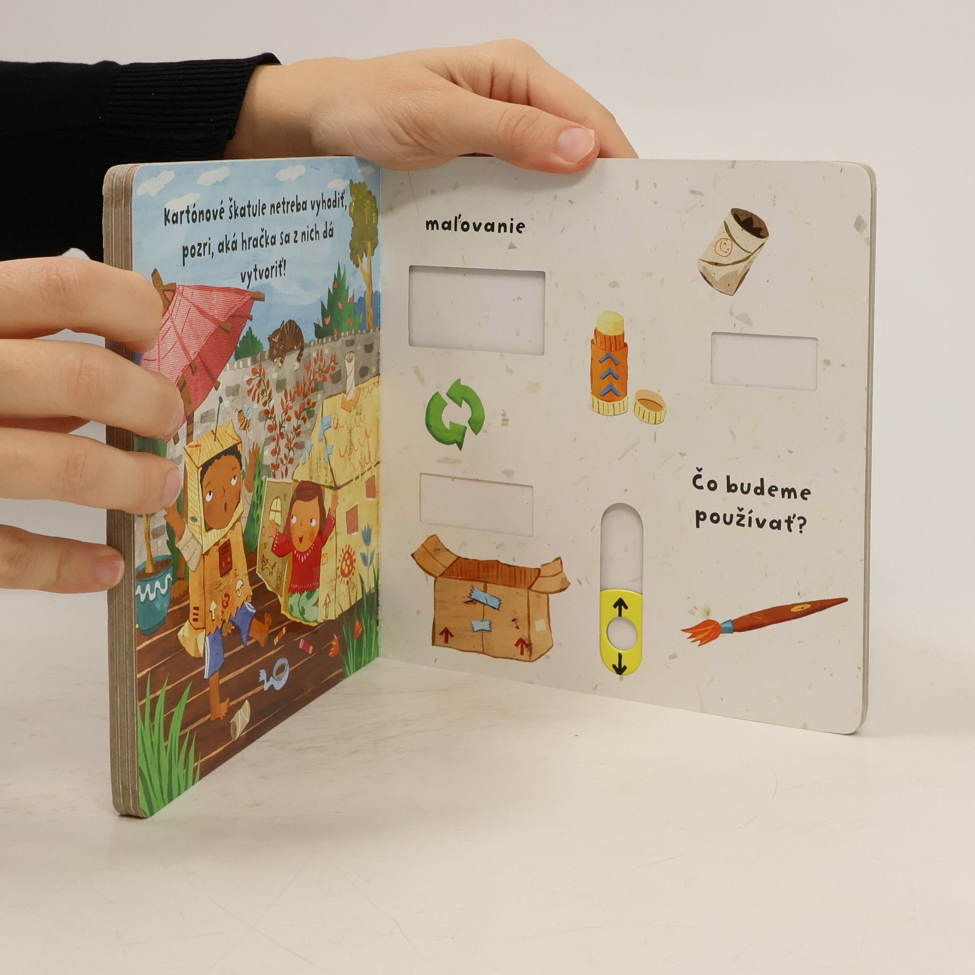 Plastové aj sklené fľaše, kartóny a papiere. Vieš, čo sa dá recyklovat? Počúvaj veršíky a pohybuj obrázkami v tomto leporele, dozvieš sa, čo je to recyklácia.