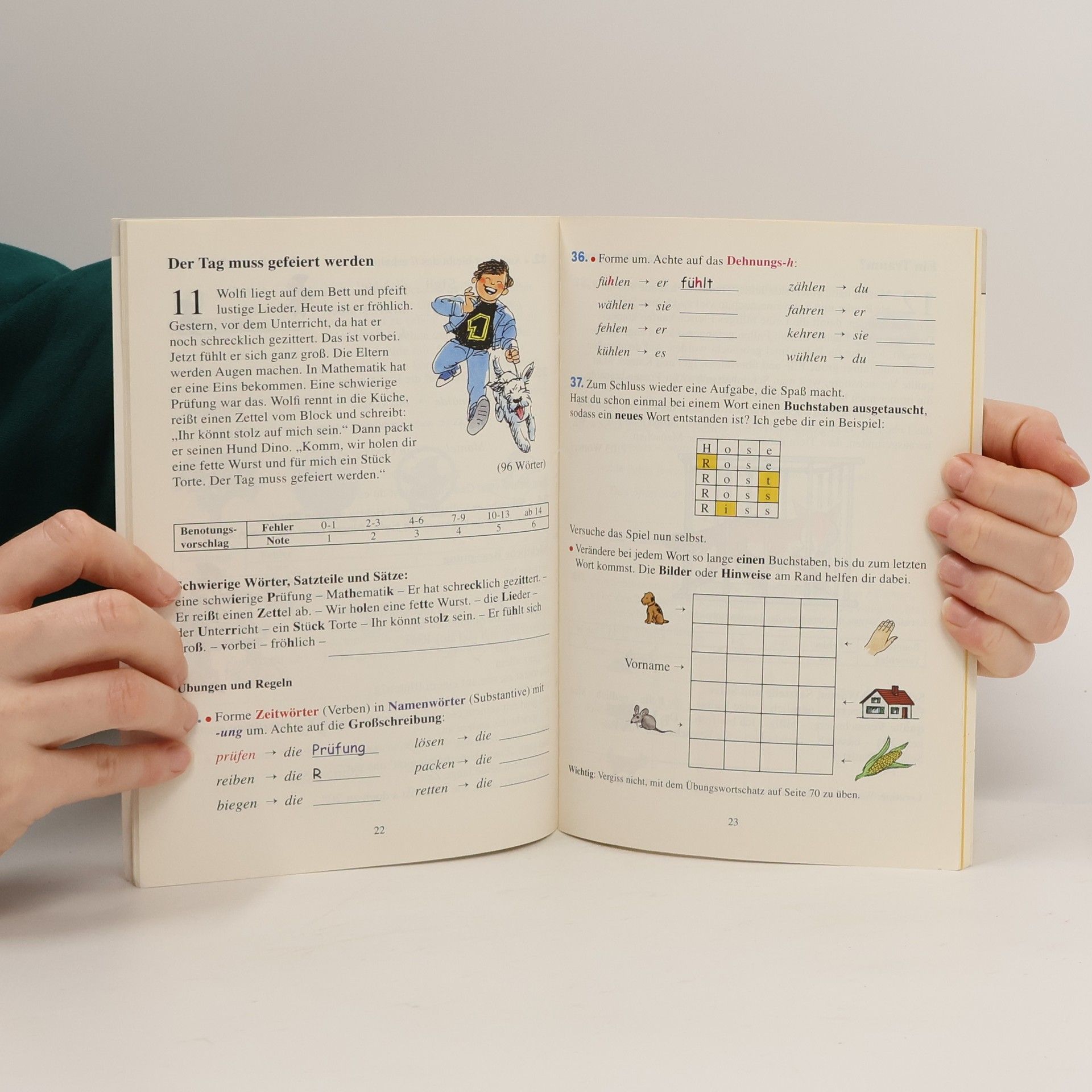 Ihr Kind ist in der 3./4. Klasse und Sie möchten es bei Diktaten unterstützen? Ohne Druck und pädagogisch durchdacht?! 3 Gründe, warum diese Lernhilfe genau richtig für Sie und Ihr Kind ist: 1. PRAXISNAHE AUFGABENTYPEN - DIE BESTE VORBEREITUNG Ihr Kind gewinnt dann Selbstvertrauen, wenn es in der Schule stolze Erfolgsmomente sammelt. Daher gibt es keine bessere Vorbereitung als zuhause lehrplannah zu üben. Dieses Lernheft beinhaltet 26 Diktate und 89 dazugehörige Übungen, die alle wichtigen Bereiche der Lerninhalte abdecken. Am Ende des Hefts befindet sich eine Liste mit allen relevanten Rechtschreibregeln. 2. LÖSUNGSTEIL UND PUNKTEVERGABE - FORTSCHRITTE ERLEBEN Durch das Heft können Sie sehen, wo Ihr Kind wirklich steht und wie viel Unterstützung es von Ihnen benötigt. Der herausnehmbare Lösungsteil enthält anschauliche Erklärungen und bietet wertvolle Tipps. So sehen Sie ganz objektiv, wie sich Ihr Kind entwickelt. 3. VON PÄDAGOG: INNEN ENTWICKELT - EIGENSTÄNDIGES LERNEN FÖRDERN Die Hauschka-Redaktion arbeitet seit Jahrzehnten daran, Kinder mit Freude zum eigenständigen Lernen zu befähigen. Auch dieses Heft ist intuitiv verständlich, kindgerecht konzeptioniert, mit zahlreichen Schulkindern getestet und optimiert. Sie werden es selbst erleben: Ihr Kind wird Spaß beim Lernen haben. Fakten zum Heft - Format: DIN-A5-Heft - Umfang: 92 Seiten - Inhalte: Rechtschreibregeln, 26 unterschiedliche Diktate, Notenskala