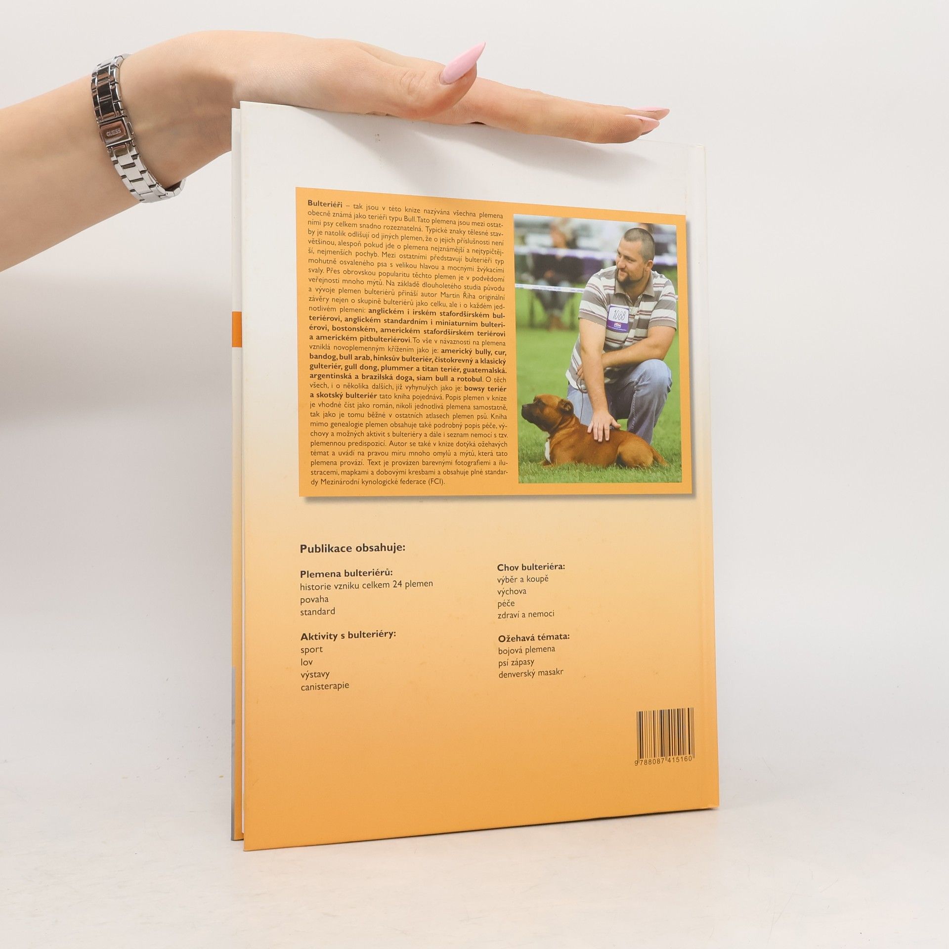 Bulteriéři - tak jsou v této knize nazývána všechna plemena obecně známá jako teriéři typu Bull. Typické znaky tělesné stavby je natolik odlišují od jiných plemen, že o jejich příslušnosti není většinou nejmenších pochyb. Popis jednotlivých plemen v knize se hodí číst jako román, nikoli jako nesouvisející příspěvky o jednotlivých plemenech. Vyjma genealogie plemen kniha obsahuje také podrobný popis péče, výchovy a možných aktivit s bulteriéry a dále i seznam nemocí s tzv. plemennou predispozicí. Autor se dotýká i ožehavých témat a uvádí na pravou míru mnoho omylů a mýtů, které tato plemena provází. Text doprovázejí barevné fotografie a ilustrace, mapky a dobové kresby a obsahuje i kompletní popisy standardů Mezinárodní kynologické federace.
