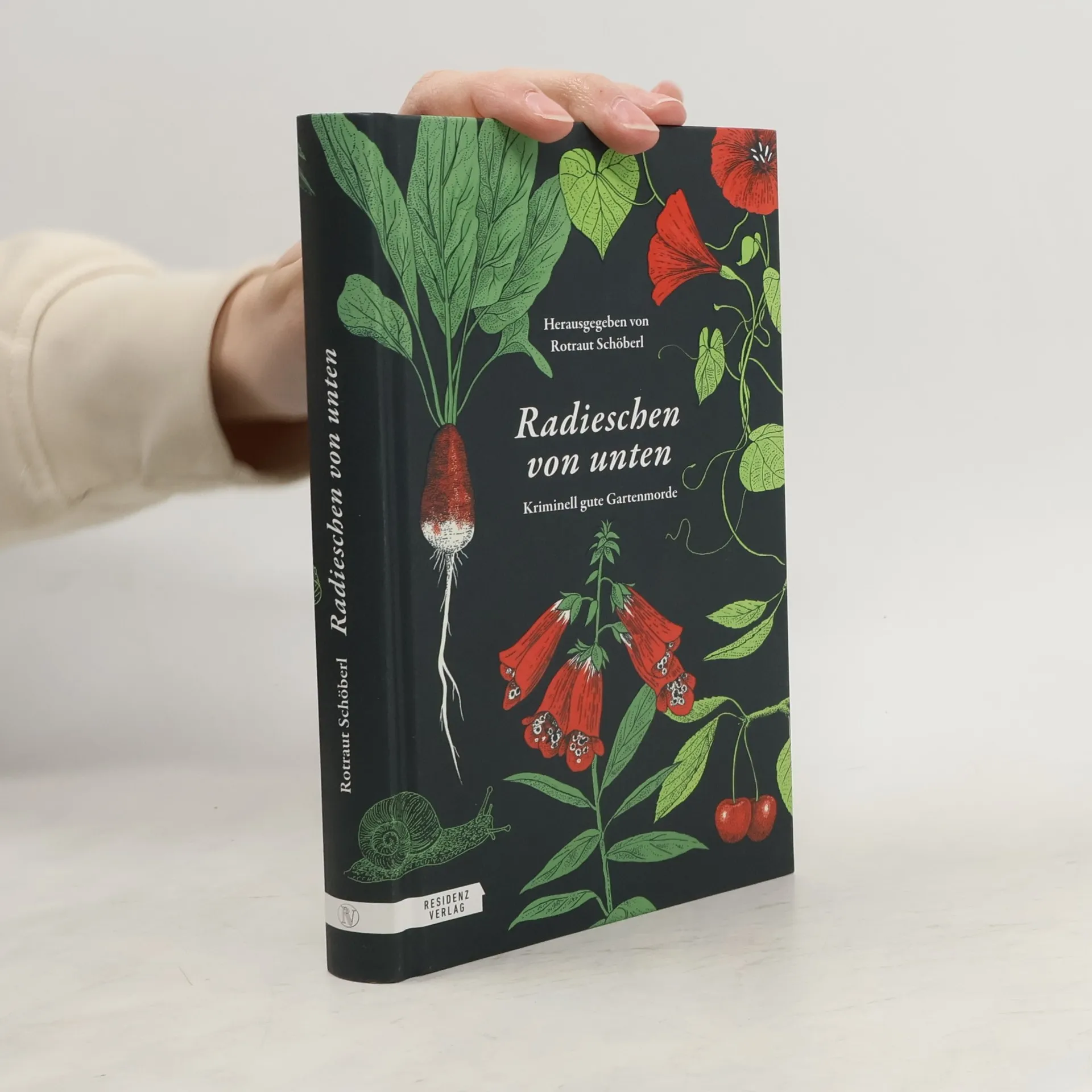 Rotraut Schöberl, engagierte Buchfrau und begeisterte Gärtnerin, verbindet ihre Leidenschaften gerne miteinander. Zwischen dem Schneiden ihrer Rosen, dem Gärtnereibesuch und dem genüsslichen Beobachten ihrer Pflanzen wird ihr klar: Ein Garten ist eigentlich der ideale Ort für einen Mord – und zahlreiche gartenaffine Autor*innen wie Alex Beer, Agatha Christie, Ann Granger, Tatjana Kruse, Thomas Raab, Eva Rossmann, sehen das genauso. Man muss ja nicht die bekannten Giftpflanzen verwenden, denn wer mordet heute noch mit Stechapfel oder Tollkirsche? Und auch der Gärtner ist heutzutage selten der Mörder – oder doch? Aber einen Tipp hat Rotraut Schöberl in „Radieschen von unten“: Wenn ihr eine Leiche zu verscharren habt, pflanzt geschützte Pflanzen darauf, dann darf dort niemand mehr graben… Im Grünen morden Bettina Balàka, Alex Beer, Agatha Christie, Ann Granger, Severin Groebner, Margarita Kinstner, Ralf Kramp, Tatjana Kruse, -ky, Martina Parker, Theresa Prammer, Thomas Raab, Erwin Riedesser, Eva Rossmann, Clementine Skorpil, Gabriele Wolff, Peter Zirbs.