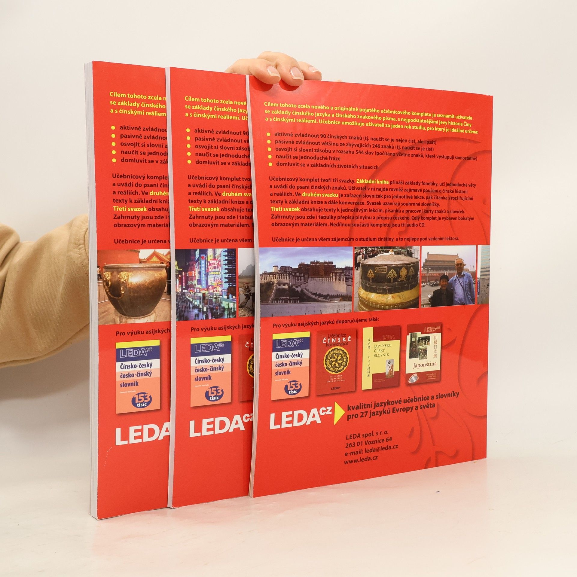 Tato nová učebnice čínštiny má seznámit uživatele se základy čínského jazyka a čínského znakového písma, s nejpodstatnějšími jevy historie Číny a s čínskými reáliemi. Umožňuje uživateli zvládnout aktivně 90 čínských znaků, pasivně zbývajících 246 znaků, osvojit si 544 slov,naučit se jednoduché fráze a domluvit se v základních životních situacích. Komplet obsahuje tři svazky. Základní kniha přináší základy fonetiky, učí jednoduché věty a uvádí do psaní čínských znaků. Ve druhém svazku je zařazen slovníček pro jednotlivé lekce, čítanka s rozšiřujícími texty k základní knize, konverzace a souhrnné slovníčky. Učebnice je určena všem zájemcům o studium čínštiny, a to nejlépe pod vedením lektora.
