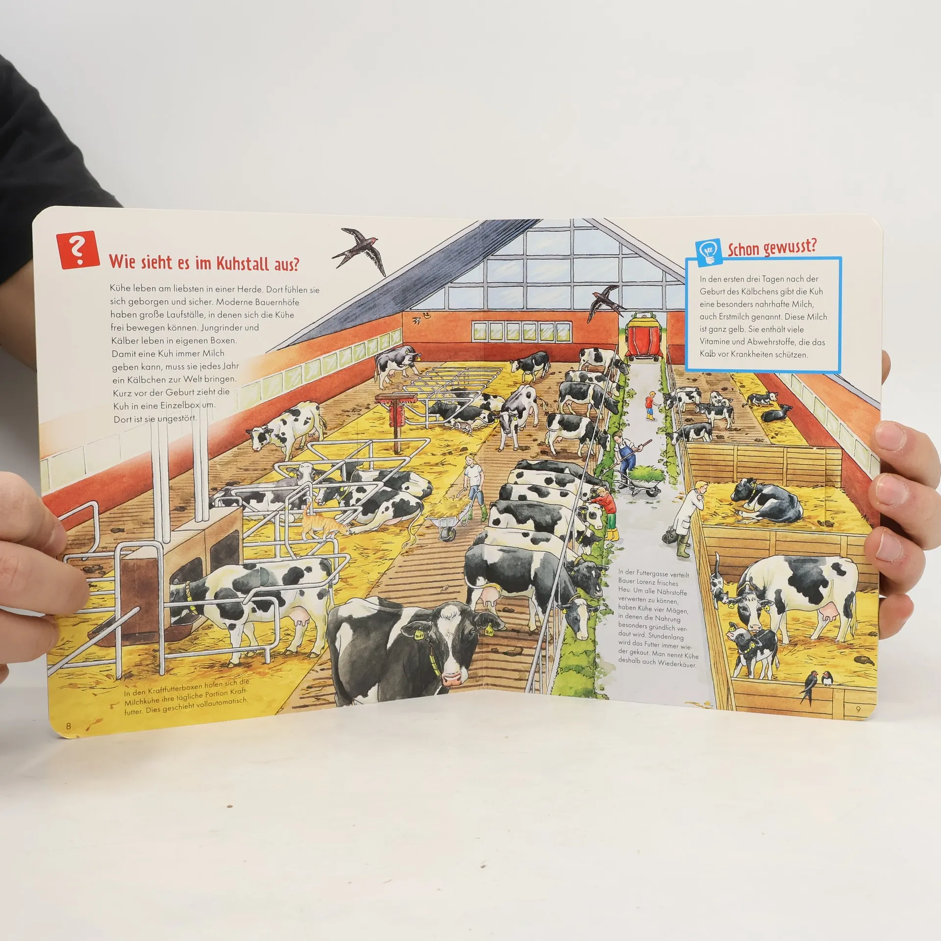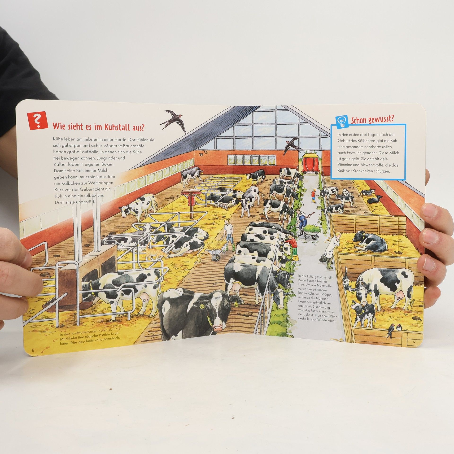 Welche Tiere leben auf dem Bauernhof? Gibt eine Kuh immer Milch? Wie arbeitet ein Mähdrescher? Dieses Sachbilderbuch bietet Kindern im Vorschulalter und Erstlesern kurze informative Texte, große detailreiche Illustrationen, Entdecker-Klappen, Spiele und Rätsel.