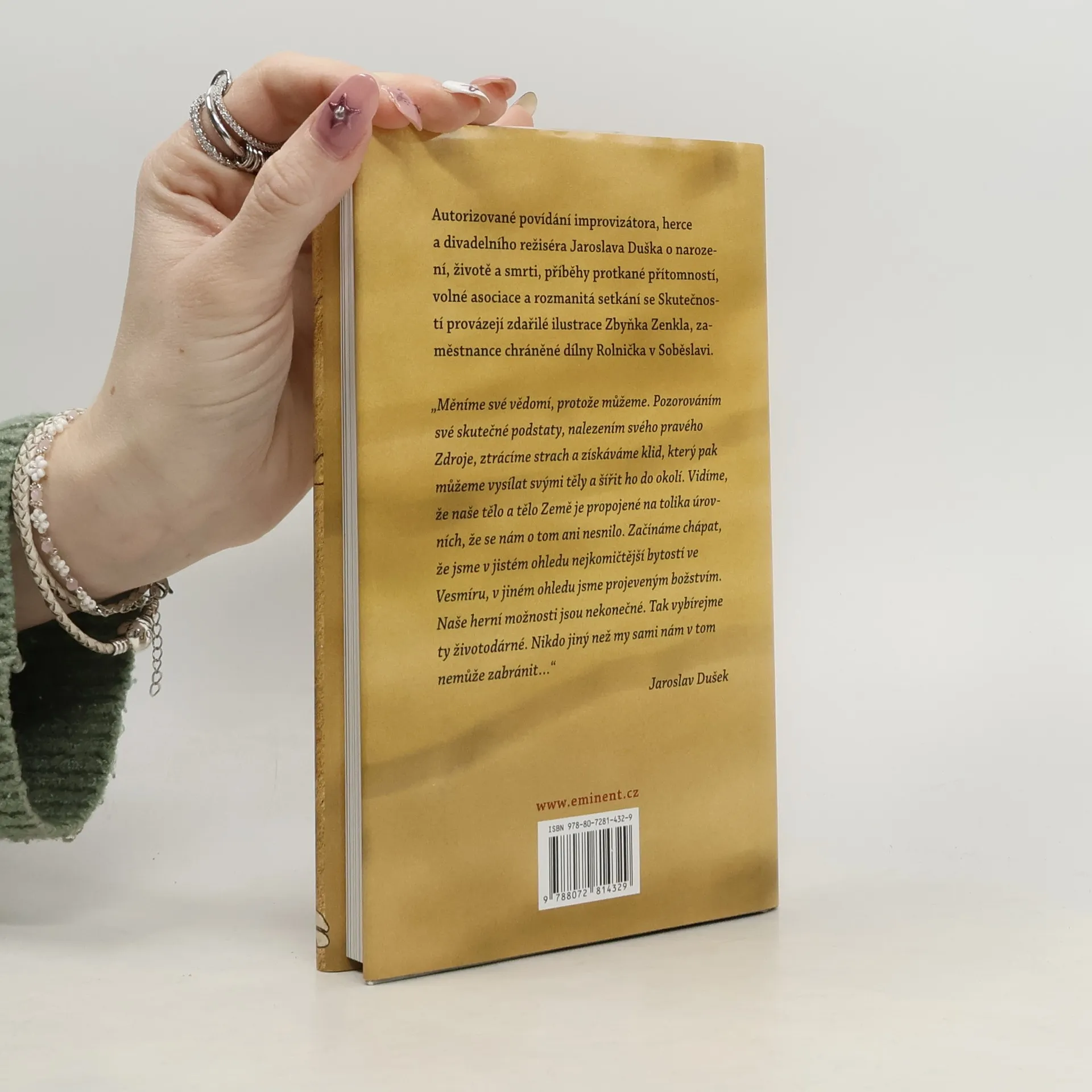 Autorizované povídání známého herce Jaroslava Duška o narození, životě a smrti. Příběhy protkané přítomností, volné asociace a rozmanitá setkání se Skutečností. Knihu provázejí zdařilé ilustrace Zbyňka Zenkla, zaměstnance chráněné dílny Rolnička v Soběslavi.