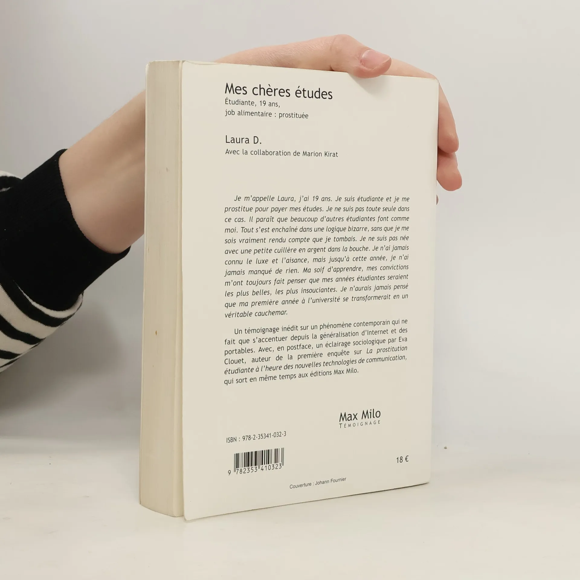 Mes chères études . Etudiante, 19 ans, . job alimentaire : prostituée . Je m'appelle Laura, j'ai 19 ans. Je suis étudiante en langues vivantes et je suis obligée de me prostituer pour payer mes études. Je ne suis pas toute seule dans ce cas. Il paraît que 40 000 autres étudiantes font comme moi. Tout s'est enchaîné dans une logique bizarre, sans que je me sois vraiment rendu compte que je tombais. Je ne suis pas née avec une petite cuillère en argent dans la bouche. Je n'ai jamais connu le luxe et l'aisance, mais jusqu'à cette année, je n'ai jamais manqué de rien. Ma soif d'apprendre, mes convictions m'ont toujours fait penser que mes années étudiantes seraient les plus belles, les plus insouciantes. Je n'aurais jamais pensé que ma première année à l'université se transformerait en un véritable cauchemar. . Un témoignage inédit sur un phénomène contemporain qui ne fait que s'accentuer depuis la généralisation d'Internet et des portables. Avec, en postface, un éclairage sociologique par Eva Clouet, auteur de la première enquête sur La prostitution étudiante à l'heure des nouvelles technologies de communication, qui sort en même temps aux éditions Max Milo..