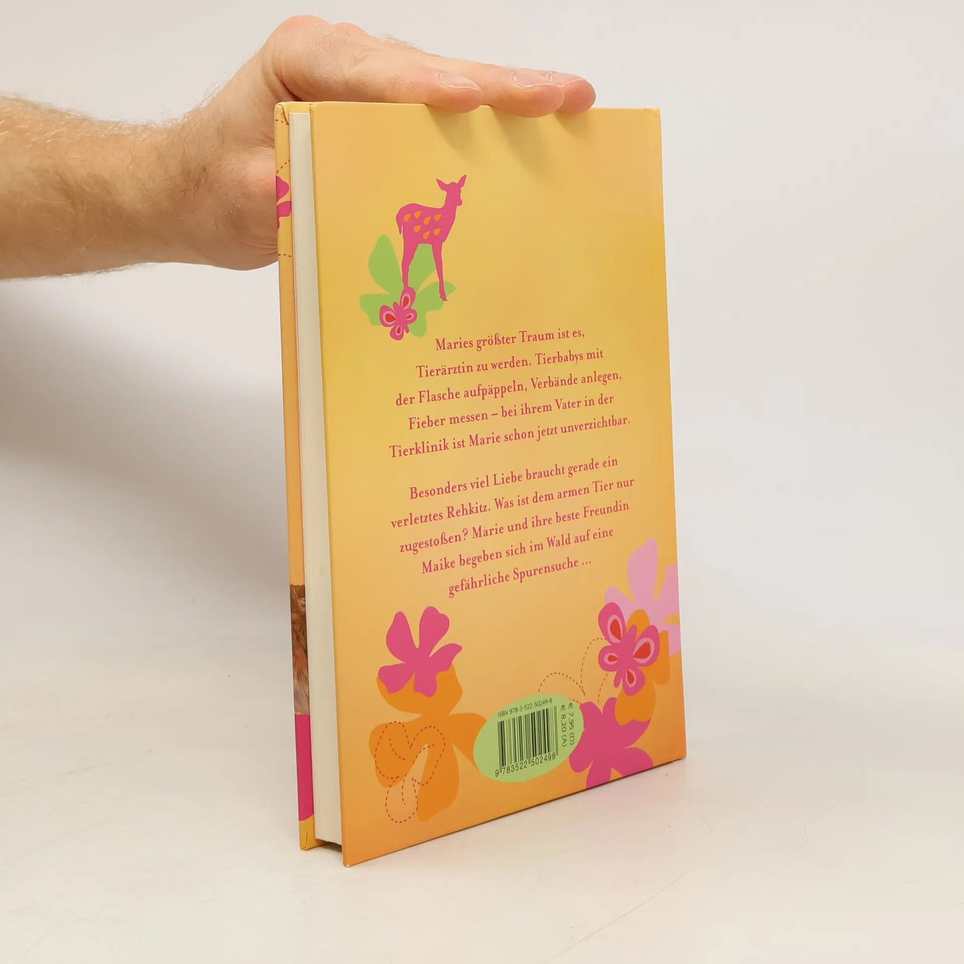 Maries größter Traum ist es, Tierärztin zu werden. Tierbabys mit der Flasche aufpäppeln, Verbände anlegen, Fieber messen – bei ihrem Vater in der Tierklinik ist Marie schon jetzt unverzichtbar. Und dank ihres Spürsinns retten sie und ihre beste Freundin Maike viele Tiere in Not. Besonders große Sorgen macht Marie sich um ein verletztes Rehkitz. Was ist ihm nur zugestoßen? Zusammen mit ihrer Freundin Maike und Hund Stracciatella beginnt Marie im Wald zu recherchieren und kommt einem Wilderer auf die Spur. „Unsere Tierklinik“ – Spannende Abenteuer für Tierfreunde ab 8 Jahren