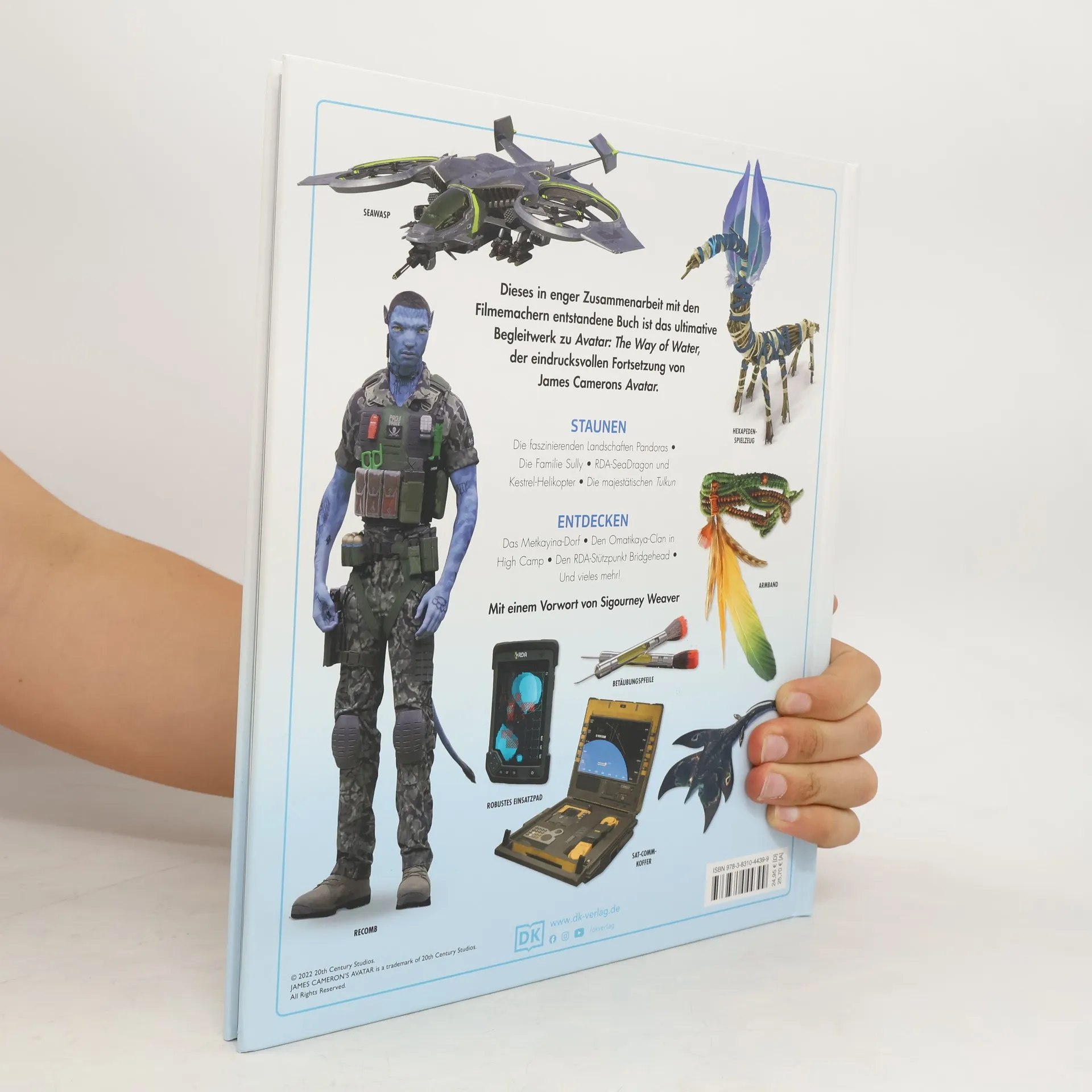 Tauche ein in die Tiefen von Avatar: The Way of Water mit diesem ultimativen Bildband. Dieses Buch, das in enger Zusammenarbeit mit James Camerons Lightstorm Entertainment entstand und von Experten geschrieben wurde, die an dem Film mitgearbeitet haben, ist vollgepackt mit atemberaubenden, exklusiven Details. In diesem unverzichtbaren visuellen Handbuch werden die Charaktere, Kreaturen, Fahrzeuge, Waffen und Schauplätze des neuesten Abenteuers auf Pandora vorgestellt. Lerne die nächste Generation von Jake Sullys und Neytiris Familie kennen, darunter die geheimnisvolle Kiri und die heldenhafte Neteyam, sowie ihre mutigen neuen Verbündeten aus dem Metkayina-Klan. Entdecke die majestätischen Tulkun, die flinken Skimwings und die Fauna und Flora von Pandora’s Ozeanen. Erforsche die neuesten furchterregenden Fahrzeuge der RDA und die spezialisierten Recombinant-Truppen unter dem Kommando von Colonel Quaritch. Entdecke das Innenleben von Bridgehead und die heilige Bucht der Ahnen. Mit einem Vorwort von Sigourney Weaver, ist Avatar: The Way of Water Die illustrierte Enzyklopädie das perfekte Geschenk für Avatar-Fans jeden Alters.