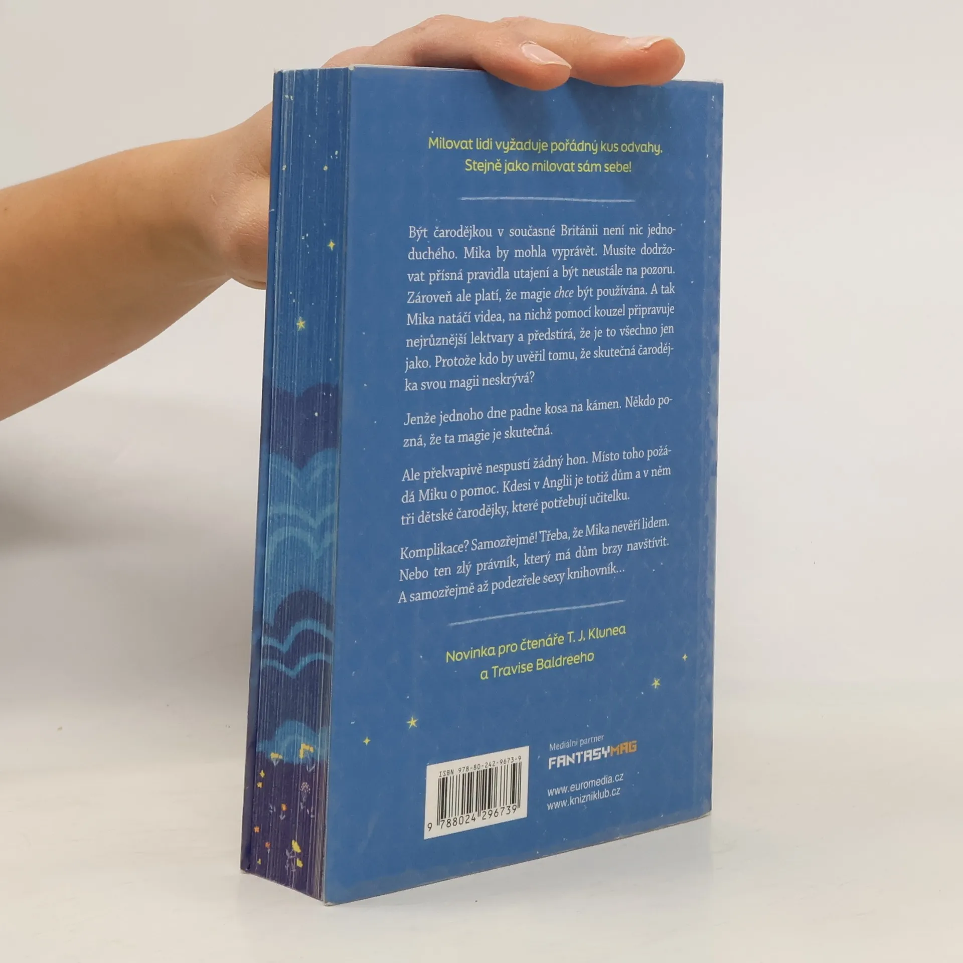 Pravidla čarodějek jsou jasná – v zájmu přežití na sebe neupozorňovat, být co nejopatrnější a moc se nedružit ani s ostatními čarodějkami. Protože kde je čarodějek víc, tam šijí s magií všichni čerti. No jo, jenže co dělat, když vás osazenstvo jistého domu prokoukne? Ne, nechce vás upálit ani utopit ve vašem rybníčku s koi kapry. Je to mnohem horší. V tom domě totiž vyrůstají hned tři malé čarodějky. Bez výcviku. A za pár týdnů má dorazit právník, na jehož rozhodnutí závisí osudy všech v domě. A jasně, rozhodně v čarodějky nevěří, a pokud by v ně uvěřil, chtěl by ty monstra smazat z povrchu zemského. A tak Mika sbalí do svého autíčka všechen svůj majetek – včetně toho rybníčku a koi kaprů (magie, co se divíte?) a vyráží na záchranně-vzdělávací misi. Čelit dětem, právníkům, hněvu nejstarší čarodějky v Anglii i zatraceně pohlednému Irovi. Co by se mohlo pokazit?
