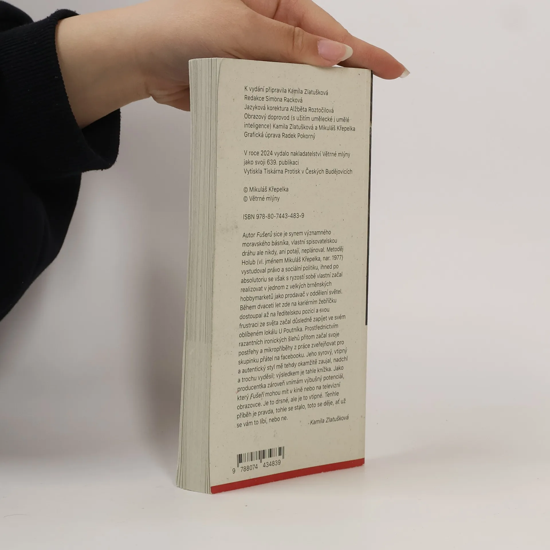 Autor Fušerů sice je synem významného moravského básníka, vlastní spisovatelskou dráhu ale nikdy, ani potají, neplánoval. Metoděj Holub (vl. jménem Mikuláš Křepelka, nar. 1977) vystudoval právo a sociální politiku, ihned po absolutoriu se však s ryzostí sobě vlastní začal realizovat v jednom z velkých brněnských hobbymarketů jako prodavač v oddělení světel. Během dvaceti let zde na kariérním žebříčku dostoupal až na ředitelskou pozici a svou frustraci ze světa začal důsledně zapíjet ve svém oblíbeném lokálu U Poutníka. Prostřednictvím razantních ironických šlehů přitom začal svoje postřehy a mikropříběhy z práce zveřejňovat pro skupinku přátel na facebooku. Jeho syrový, vtipný a autentický styl mě tehdy okamžitě zaujal, nadchl a trochu vyděsil; výsledkem je tahle knížka. Jako producentka zároveň vnímám výbušný potenciál, který Fušeři mohou mít v kině nebo na televizní obrazovce. Je to drsné, ale je to vtipné. Tenhle příběh je pravda, tohle se stalo, toto se děje, ať už se vám to líbí, nebo ne.