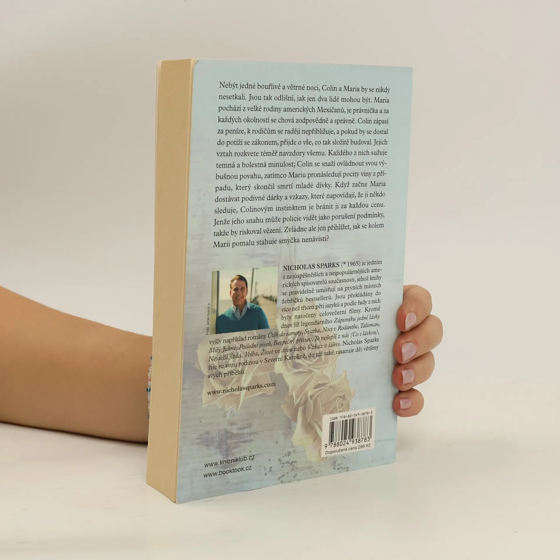 2. vydání. Colin Hancock má za sebou divokou minulost, a přestože se snaží žít spořádaně, stále se nad ním vznáší hrozba vězení. Maria Sanchezová, dcera mexických přistěhovalců, je jeho zdánlivý opak; úspěšná, tvrdě pracující, dokonalá. Ani jeden nehledá vážný vztah, ale náhodné setkání na deštivé silnici zkříží jejich cesty naprosto nečekaným způsobem. Silně zakořeněné předsudky nakonec nejsou tak silné jako pouto, které se mezi nimi vytvoří. Nový román Nicholase Sparkse připomíná, že ti, kdo nás dokážou vidět v nejjasnějším světle, se zprvu mohou skrývat ve stínu…
