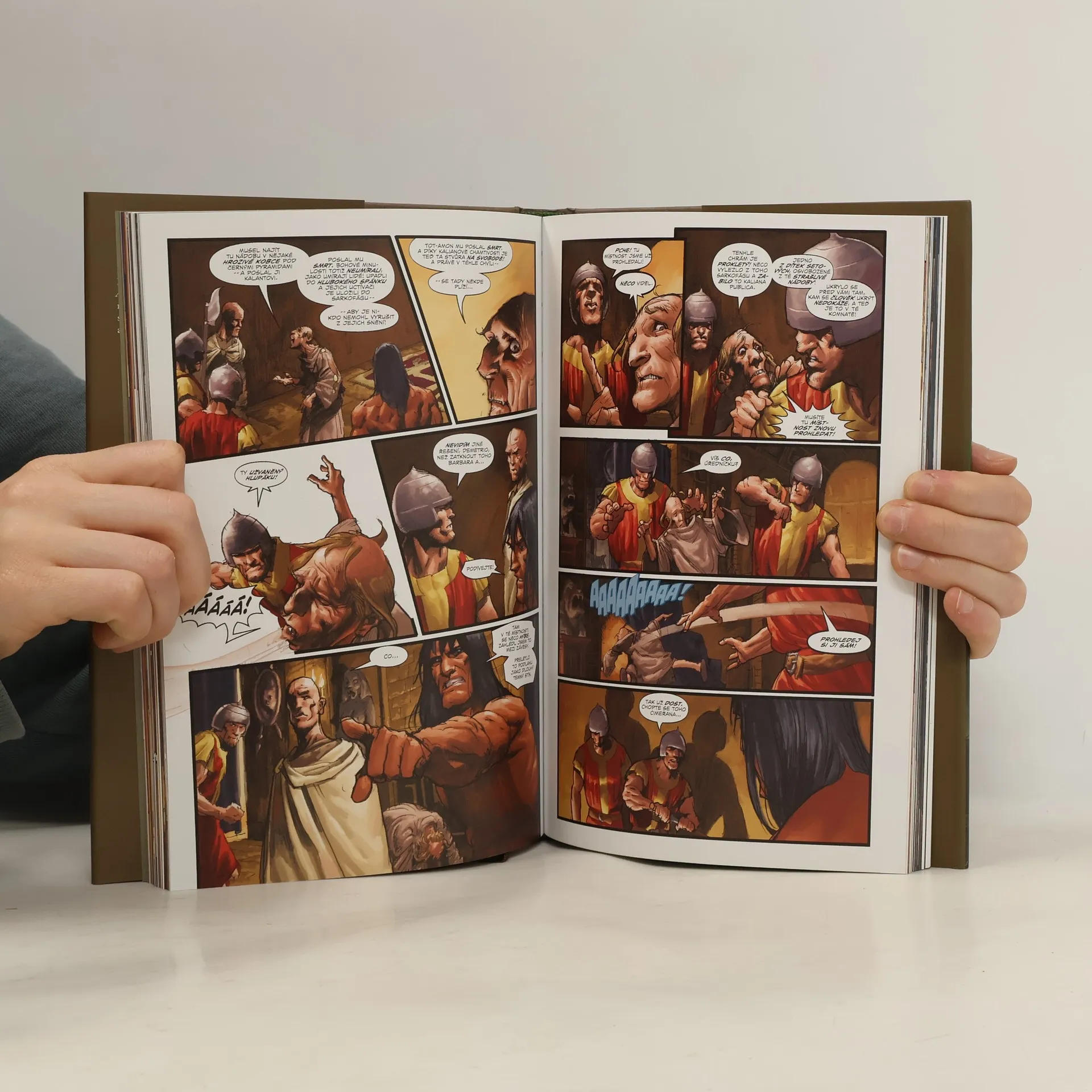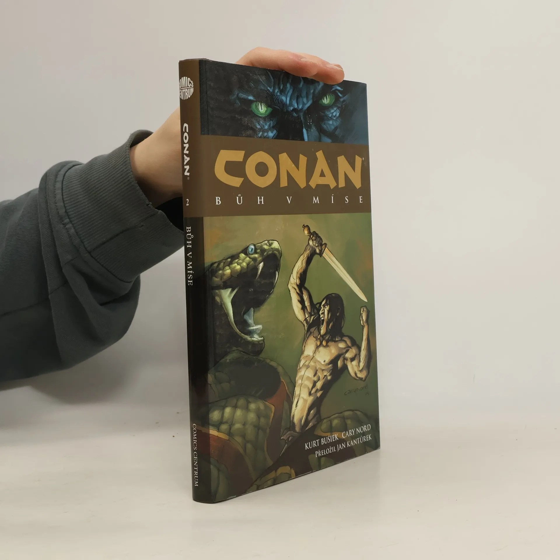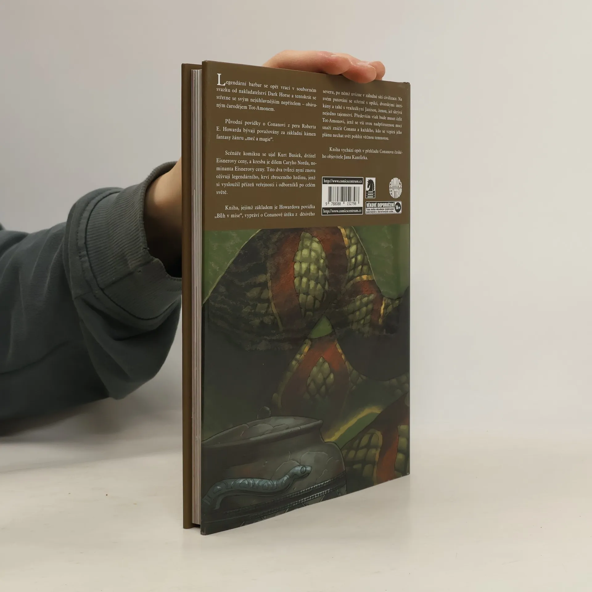 Veleúspěšná komiksová řada věrně odrážející původní předlohu spisovatele Roberta E. Howarda. Legendární barbar se opět vrací v knize od nakladatelství Dark Horse a tentokrát se střetne se svým nejúhlavnějším nepřítelem – obávaným čarodějem Tot-Amonem. Původní povídky o Conanovi z pera Roberta E. Howarda bývají považovány za základní kámen fantasy žánru „meč a magie“. Scénáře komiksu se ujal Kurt Busiek, držitel Eisnerovy ceny, a kresba je dílem Caryho Norda, nominanta Eisnerovy ceny. Tito dva tvůrci nyní znovu oživují legendárního, krví zbroceného hrdinu, jenž si vysloužil přízeň veřejnosti i odborníků po celém světě. Kniha, jejímž základem je Howardova povídka „Bůh v míse“, vypráví o Conanově útěku z děsivého severu, po němž uvízne v záludné síti civilizace. Na svém putování se střetne s opilci, dvorskými intrikány a také s vražedkyní Janisou, ženou, jež skrývá nejedno tajemství. Především však bude muset čelit Tot-Amonovi, jenž se vší svou nadpřirozenou mocí snaží zničit Conana a každého, kdo se vzpírá jeho plánu nechat svět pohltit věčnou temnotou.