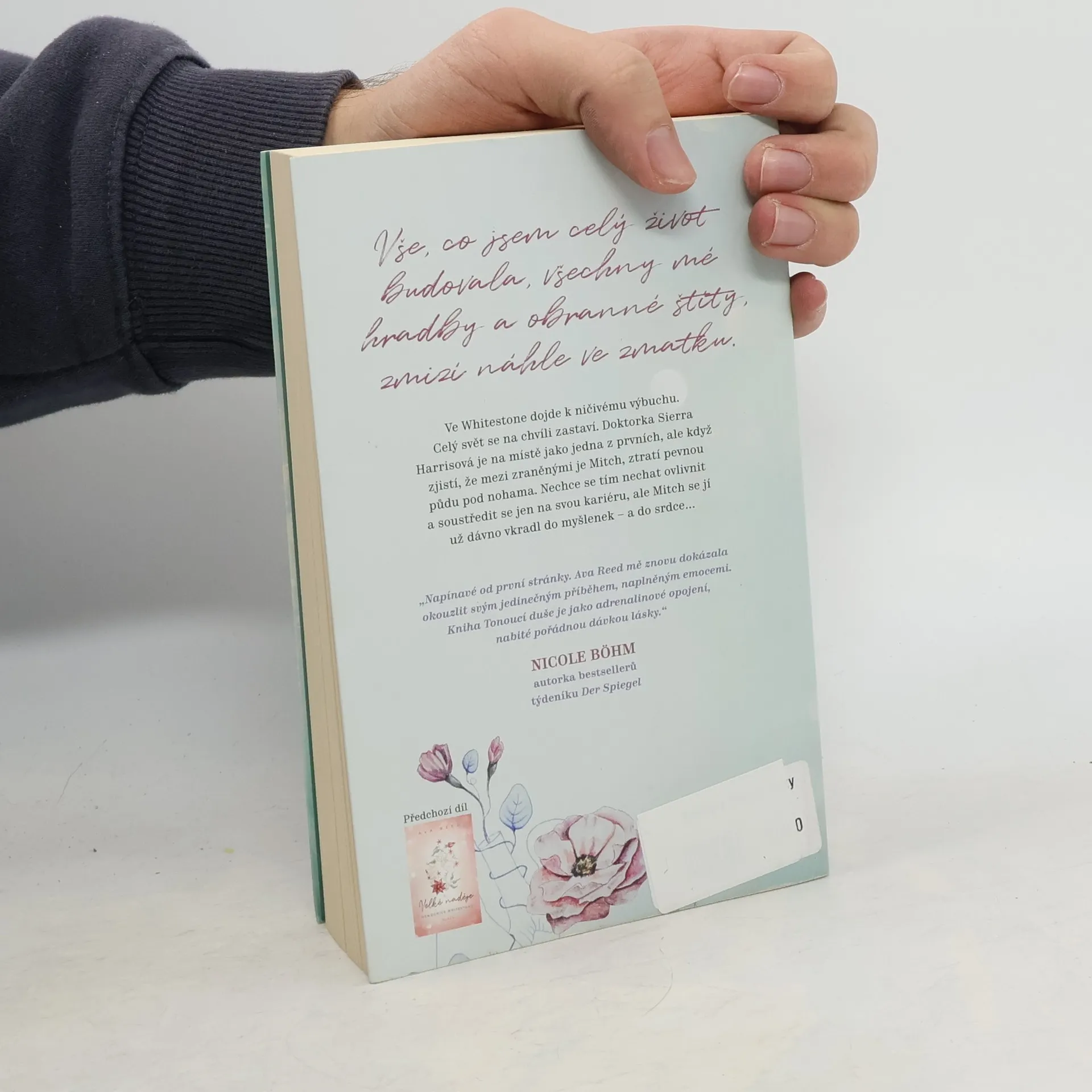 Pokračování románu německé autorky odehrávajícího se v nemocničním prostředí. Když Whitestonem otřese výbuch a dojde k velkému neštěstí, svět se na chvíli zastaví. Čerstvá absolventka doktorka Sierra Harrisová je na místě jako jedna z prvních, ale jakmile zjistí, že mezi zraněnými je zrovna její kolega Mitch Rivera, změní se jí život. Chtěla si držet od ostatních odstup a stát se jednou z nejlepších kardiochiruržek. Ale do srdce se jí vkrade Mitch, který za nepřístupnou a temperamentní fasádou tuší zranitelnou ženu, toužící po sblížení s ostatními. Mitchovi zůstaly po neštěstí jizvy, není ale jediný, Sierra má jizvu na duši. Je poznamenaná rozpadem své rodiny. Dokážou v sobě najít přístav a zázemí? Nakladatelská anotace. Kráceno.