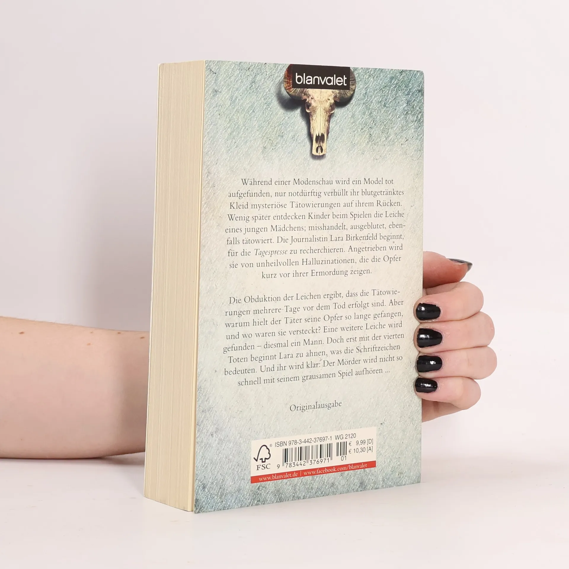 Er träumt von einem Paradies auf Erden – und schickt seine Opfer dafür durch die Hölle Während einer Modenschau wird ein Model tot aufgefunden, nur notdürftig verhüllt ihr blutgetränktes Kleid mysteriöse Tätowierungen auf ihrem Rücken. Wenig später entdecken Kinder die Leiche eines jungen Mädchens; misshandelt, ausgeblutet, ebenfalls tätowiert. Die Journalistin Lara Birkenfeld beginnt, für die Tagespresse zu recherchieren. Angetrieben wird sie von unheilvollen Halluzinationen, die die Opfer kurz vor ihrem Tod zeigen. Die Obduktion der Leichen ergibt, dass die Tätowierungen mehrere Tage vor ihrer Ermordung vorgenommen wurden. Warum hielt der Täter seine Opfer so lange gefangen, und wo waren sie versteckt? Erst als die vierte Leiche gefunden wird, beginnt Lara zu ahnen, was die Schriftzeichen bedeuten. Und ihr wird klar: Der Mörder wird so schnell nicht aufhören. Der 3. Fall der sympathischen Journalistin Lara Birkenfeld: Geht unter die Haut!