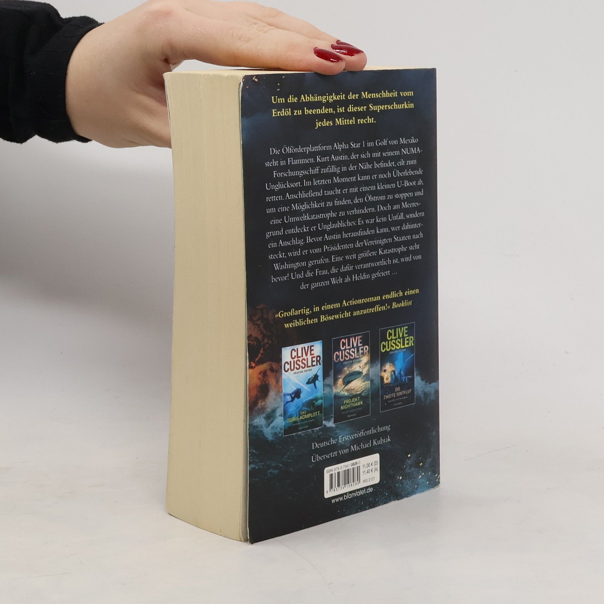 »Großartig, in einem Actionroman endlich einen weiblichen Bösewicht anzutreffen!« Booklist Die Ölförderplattform Alpha Star 1 im Golf von Mexiko steht in Flammen. Kurt Austin, der sich mit seinem NUMA-Forschungsschiff zufällig in der Nähe befindet, eilt zum Unglücksort. Im letzten Moment kann er noch Überlebende retten. Anschließend taucht er mit einem kleinen U-Boot ab, um eine Möglichkeit zu finden, den Ölstrom zu stoppen und eine Umweltkatastrophe zu verhindern. Doch am Meeresgrund entdeckt er Unglaubliches: Es war kein Unfall, sondern ein Anschlag. Bevor Austin herausfinden kann, wer dahintersteckt, wird er vom Präsidenten der Vereinigten Staaten nach Washington gerufen. Eine weit größere Katastrophe steht bevor! Und die Frau, die dafür verantwortlich ist, wird von der ganzen Welt als Heldin gefeiert … Jeder Band ein Bestseller und einzeln lesbar. Lassen Sie sich die anderen Abenteuer von Kurt Austin nicht entgehen!