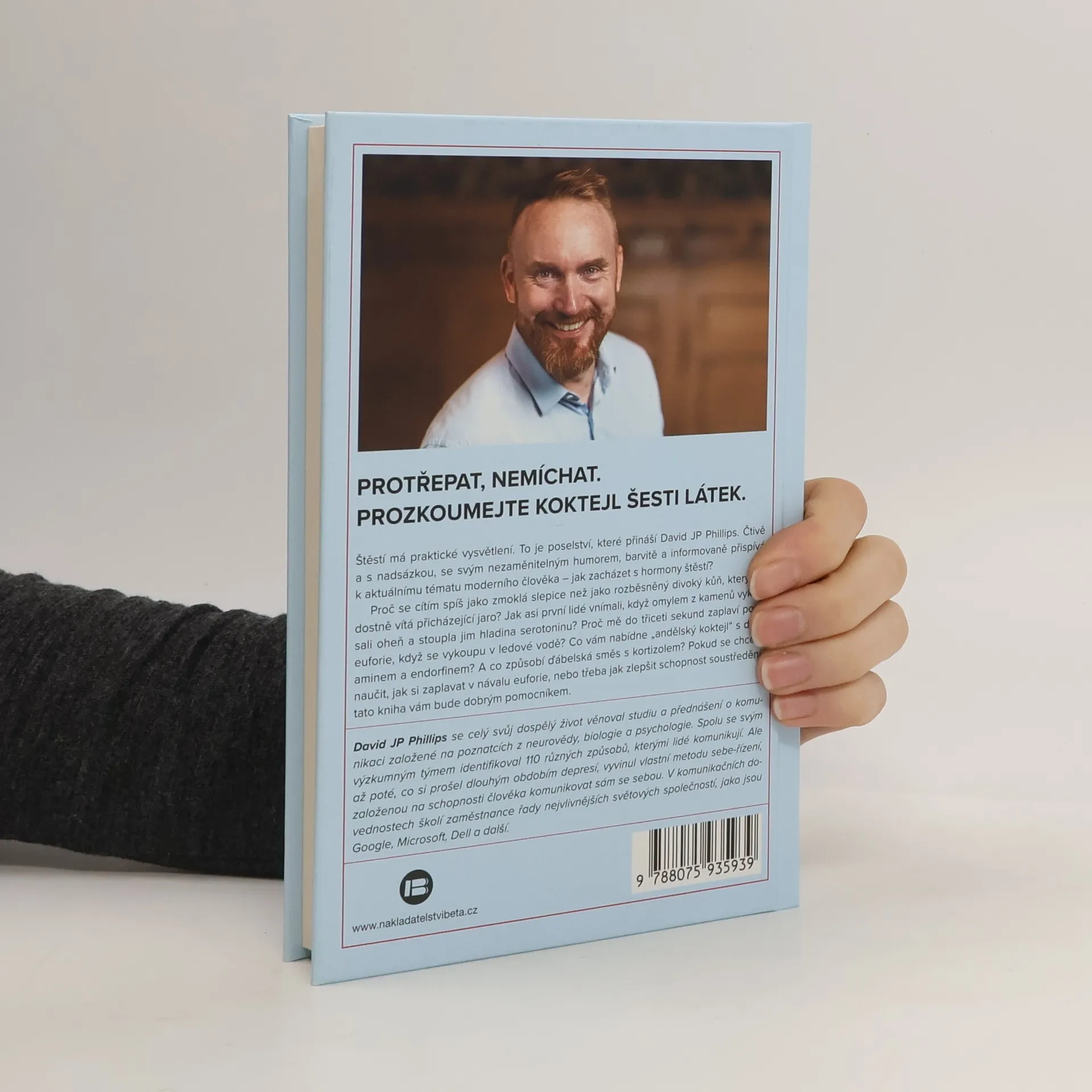 Jak by na vás asi zapůsobil Andělský koktejl namíchaný z dopaminu, serotoninu a endorfinů? Nebo byste si raději dali Ďábelský koktejl, jehož hlavní složkou je kortizol? Kniha vás seznámí s tím, jak na lidský organismus působí šest klíčových látek – dopamin, oxytocin, serotonin, kortizol, endorfin a testosteron – neurotransmitery, které si lidský organismus dokáže sám vyrábět. Tato kniha vám ukáže, jak je možné ovládat fungování chemické továrny vašeho vlastního těla i jak se naučit využívat plný potenciál své mysli a stát se tak tou nejlepší verzí sebe samého. Anebo taky ne. David JP Phillips se celý svůj dospělý život věnoval studiu a přednášení o komunikaci založené na poznatcích z neurovědy, biologie a psychologie. Spolu se svým výzkumným týmem identifikoval 110 různých způsobů, kterými spolu lidé navzájem komunikují. Ale až poté, co si prošel dlouhým obdobím depresí, vyvinul svoji metodu sebe-řízení, založenou na pochopení schopnosti člověka komunikovat sám se sebou. Jeho 3 přednášky na TEDx patří s 10 miliony zhlédnutí k těm nejúspěšnějším. Kniha vyšla nejdříve ve švédštině, ale autorská práva na její překlad byla během pěti měsíců prodána do více jak dvaceti zemí.