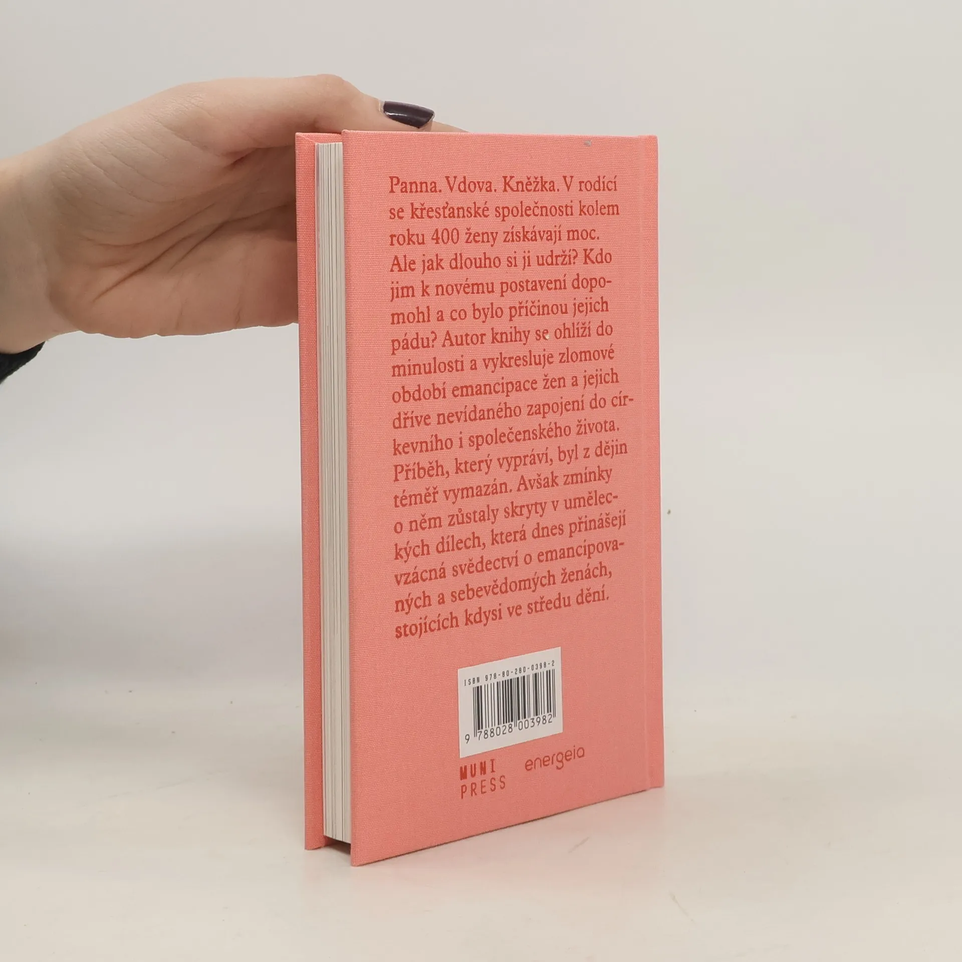 Panna. Vdova. Kněžka. V rodící se křesťanské společnosti kolem roku 400 ženy získávají moc. Ale jak dlouho si ji udrží? Kdo jim k novému postavení dopomohl a co bylo příčinou jejich pádu? Autor knihy se ohlíží do minulosti a vykresluje zlomové období emancipace žen a jejich dříve nevídaného zapojení do církevního i společenského života. Příběh, který vypráví, byl z dějin téměř vymazán. Avšak zmínky o něm zůstaly skryty v uměleckých dílech, která dnes přinášejí vzácná svědectví o emancipovaných a sebevědomých ženách, stojících kdysi ve středu dění.