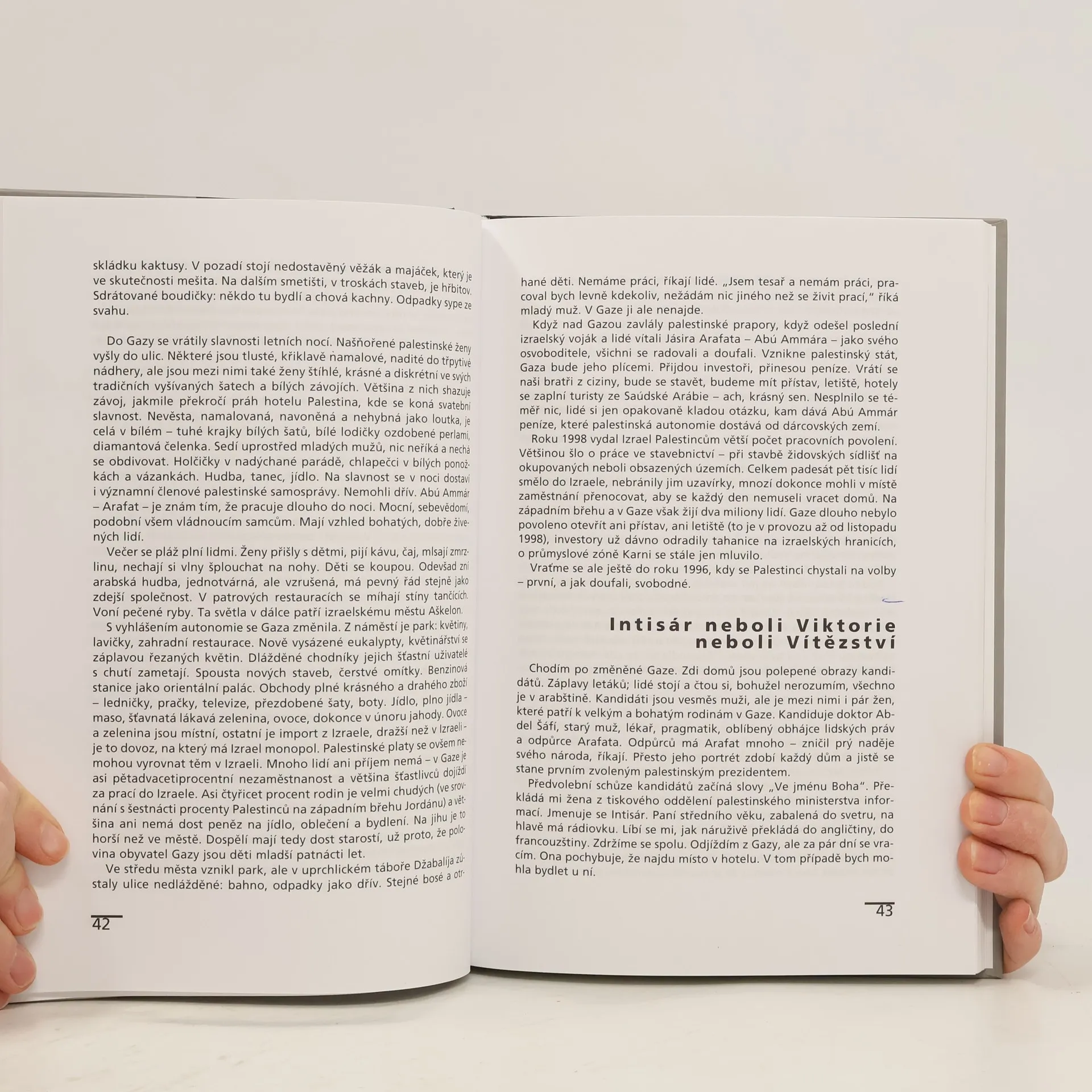 Pestrá mozaika dojmů, úvah, komentářů a zamyšlení z cesty po oblasti, která je jedním z neuralgických bodů současného světa i kolébkou jeho kultury. Kniha je na rozhraní cestopisu a historicko-politické publicistiky. Poznatky a zážitky z návštěv Izraele a Palestiny z pera redaktorky Českého rozhlasu. Obsah: Tel Aviv, Gaza, Jeruzalém, Betlém, Hebron-Chalíl, Beduíni, Amos Oz, Náblus, Ariel, Jericho - Aríha, Mohamed Said Ahmed, Haifa, Vesnice, které nejsou na mapě, Akko, Golany, Mrtvé moře, Přejdi Jordán, Rudé moře, Post scriptum, Chronologie některých důležitých událostí.