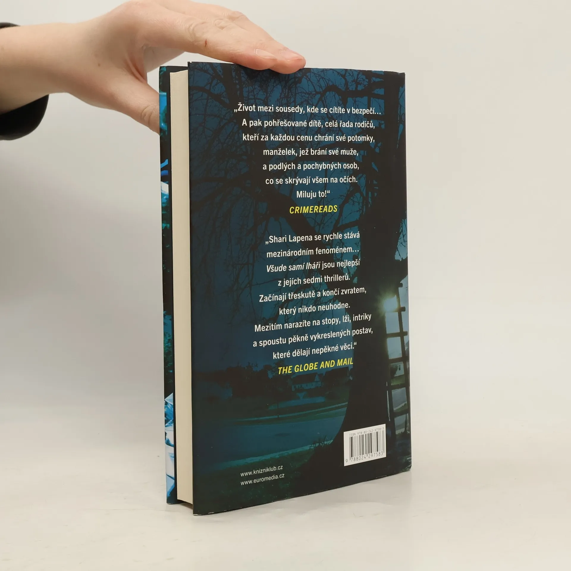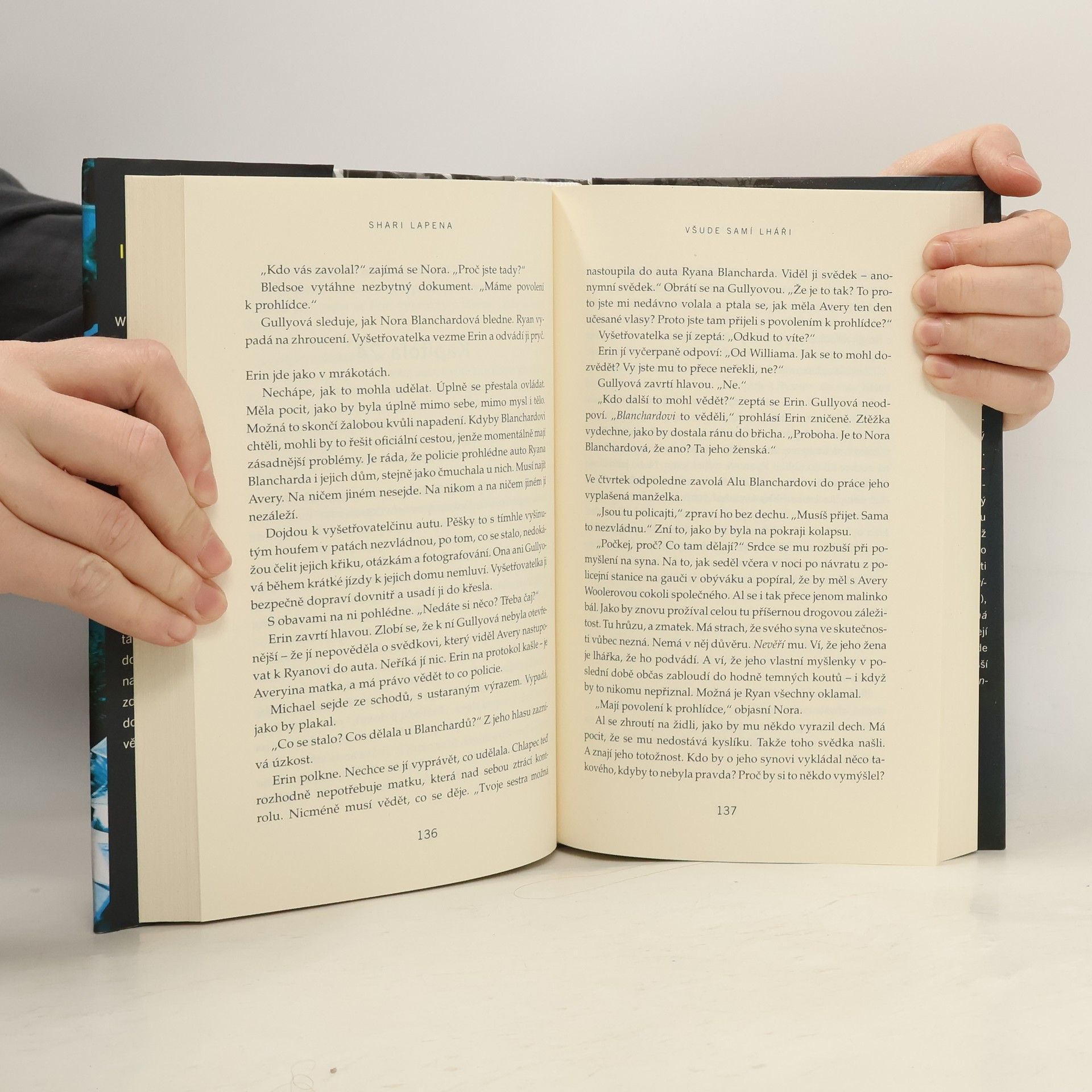 Psychologický thriller, ve kterém pátrání po devítileté dívce odkrývá skutečné vztahy a dobře ukrývaná tajemství na malém městě. Z městečka Stanhope doslova sálá klid a bezpečí. Než se ztratí Avery, dcera místního bezúhonného lékaře. Ten se stane podezřelým číslo jedna, ale ne jediným. Někdo Avery viděl nastupovat do auta jednoho mladíka. A své nejlepší kamarádce tvrdila, že má staršího přítele. Najednou tady každý na někoho něco ví. Ale dá se tu vůbec někomu věřit? Nakladatelská anotace. Kráceno.