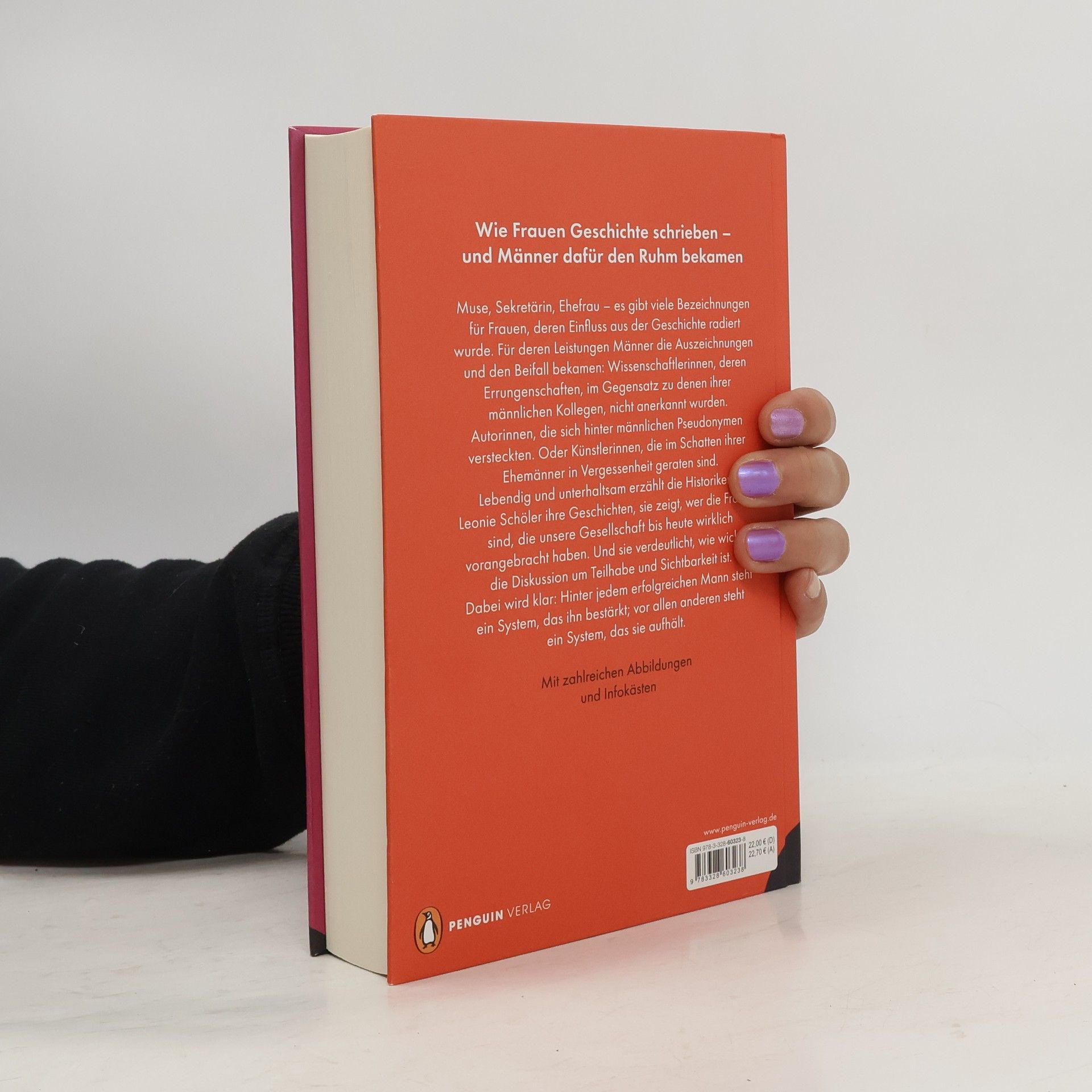 Wie Frauen Geschichte schrieben – und Männer dafür den Ruhm bekamen Muse, Sekretärin, Ehefrau – es gibt viele Bezeichnungen für Frauen, deren Einfluss aus der Geschichte radiert wurde. Für deren Leistungen Männer die Auszeichnungen und den Beifall bekamen: Wissenschaftlerinnen, deren Errungenschaften, im Gegensatz zu denen ihrer männlichen Kollegen, nicht anerkannt wurden. Autorinnen, die sich hinter männlichen Pseudonymen versteckten. Oder Künstlerinnen, die im Schatten ihrer Ehemänner in Vergessenheit geraten sind. Lebendig und unterhaltsam erzählt die Historikerin Leonie Schöler ihre Geschichten, sie zeigt, wer die Frauen sind, die unsere Gesellschaft bis heute wirklich vorangebracht haben. Und sie verdeutlicht, wie wichtig die Diskussion um Teilhabe und Sichtbarkeit ist. Dabei wird klar: Hinter jedem erfolgreichen Mann steht ein System, das ihn bestärkt; vor allen anderen steht ein System, das sie aufhält. Mit zahlreichen Abbildungen und Infokästen