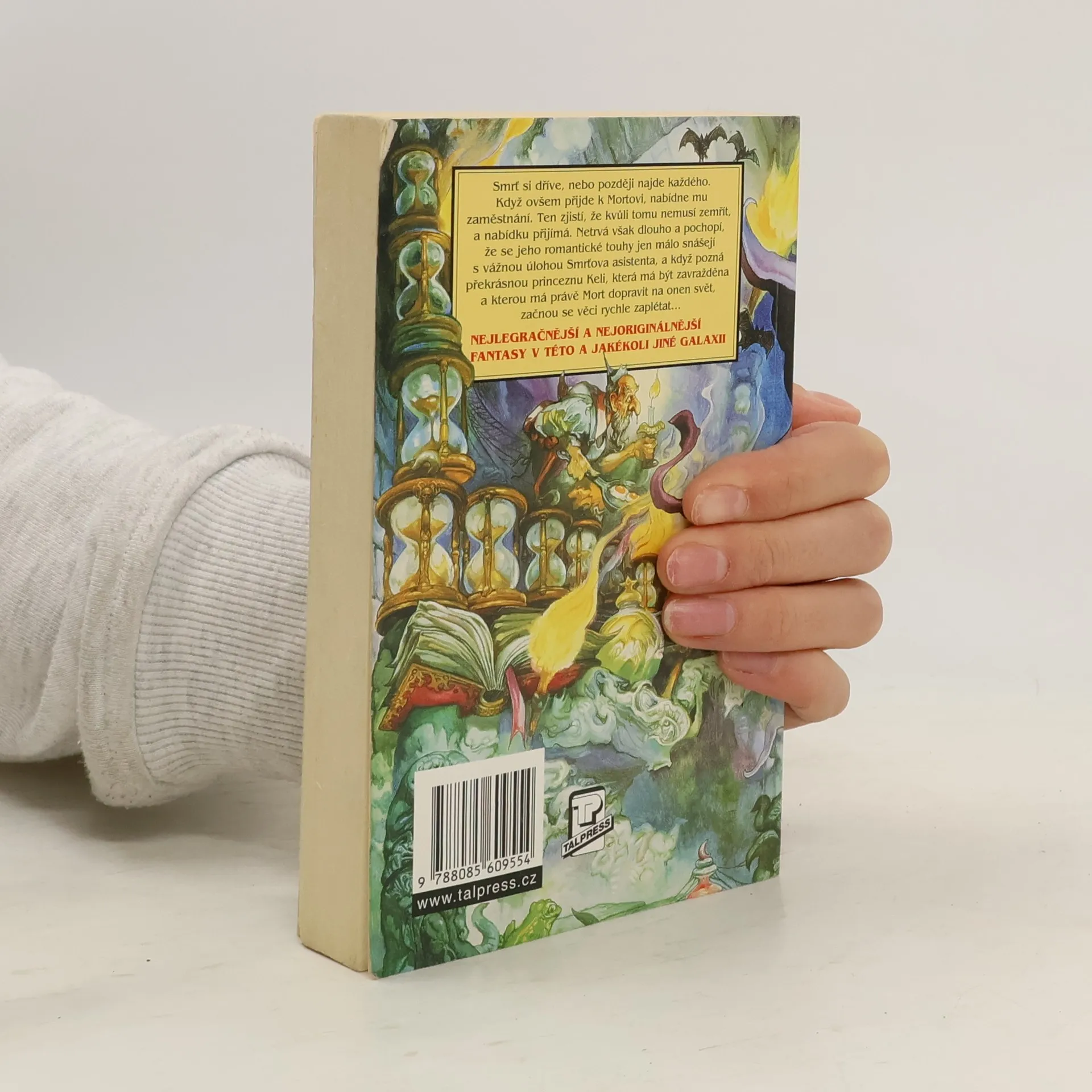 Smrť si dříve nebo později najde každého. Když ovšem přijde k Mortovi, nabídne mu zaměstnání. Ten zjistí, že kvůli tomu nemusí zemřít, a nabídku přijímá, netrvá však dlouho a pochopí, že se jeho romantické touhy jen málo snášejí s vážnou úlohou Smrťova asistenta, a když pozná překrásnou princeznu Keli, která má být zavražděna a kterou má pravé Mort dopravit na onen svět, začnou se věci rychle zaplétat... Nejlegračnější a nejoriginálnější fantasy v této i jakékoli jiné galaxii!