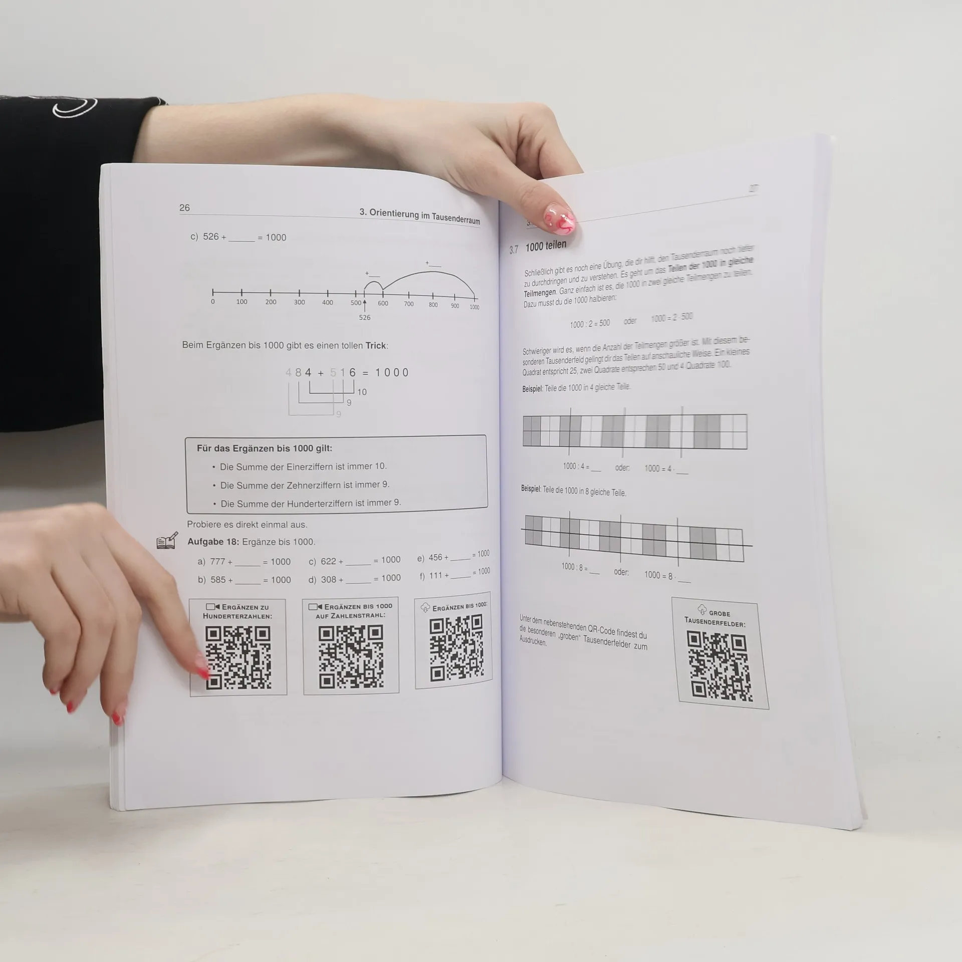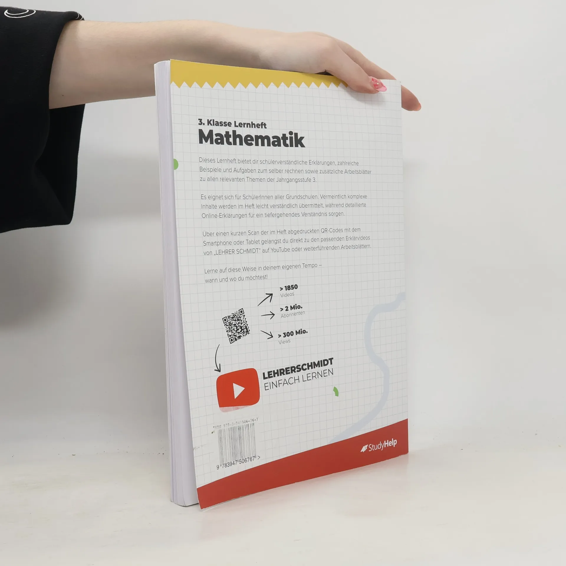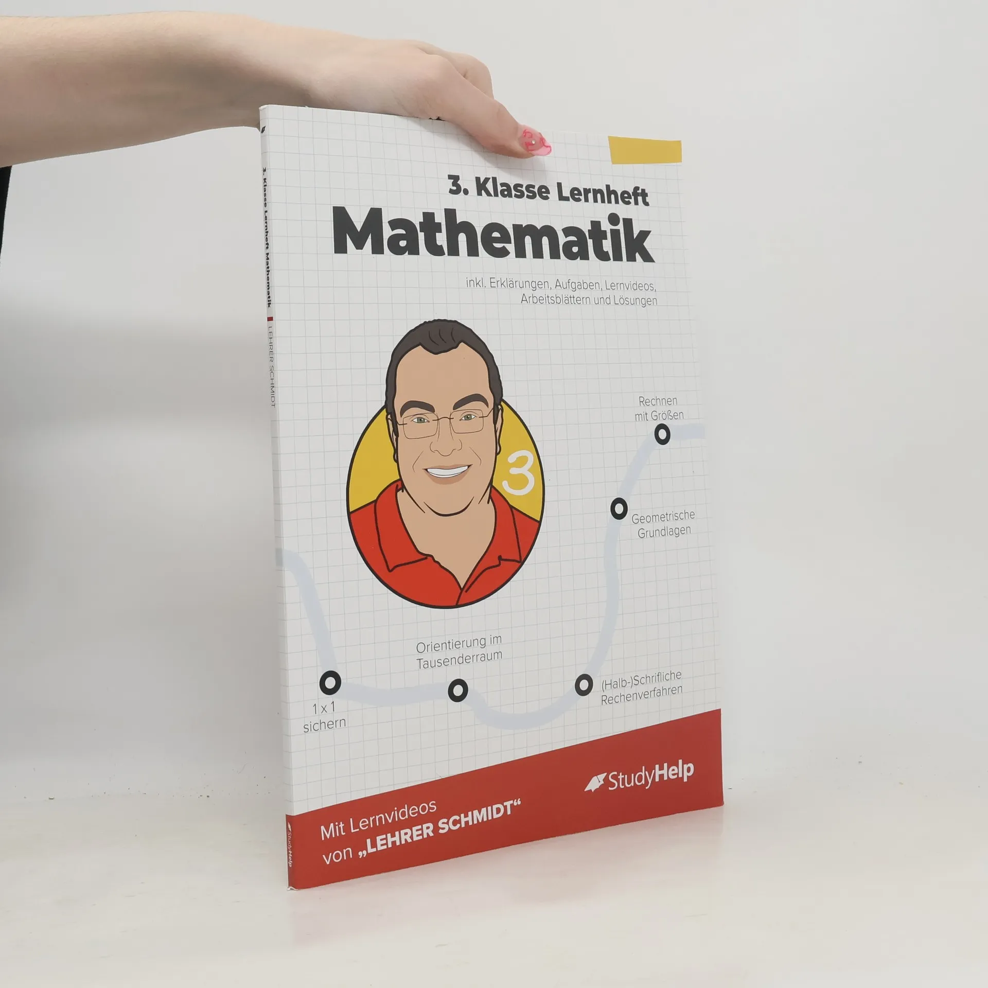 Unser Lernheft ist die ideale Ergänzung zu deinem Schulbuch und unterstützt dich mit Lernvideos von „Lehrer Schmidt“, um den Überblick zu behalten! Es umfasst 102 Seiten und bietet anschauliche Erklärungen, 51 Lernvideos (werbefrei), 41 zusätzliche Arbeitsblätter zum Download sowie 65 Aufgaben mit Lösungen. Hier findest du Erklärungen, Beispiele und Aufgaben zu allen relevanten Themen der 3. Klasse. Egal, ob du den aktuellen Stoff vertiefen oder bereits Gelerntes wiederholen möchtest, hier wirst du fündig. Komplizierte Zusammenhänge werden in verständlicher Sprache erklärt, ergänzt durch Merksätze, Skizzen und notwendige Materialien. Die Lernvideos und die didaktisch aufbereiteten Arbeitsblätter von Sebastian Kottmann unterstützen dich zusätzlich. Alle Themen sind in übersichtliche Kapitel gegliedert, die dich durch die 3. Klasse leiten. Im 3. Schuljahr wird das Einmaleins und Einsdurcheins gefestigt, gefolgt von Geteiltaufgaben mit Rest und der Erweiterung des Zahlenraums bis 1000. Konkretes Material wie Tausenderwürfel und Hunderterplatten helfen bei der Erfassung des neuen Zahlenraums. Die schriftliche Addition und Subtraktion wird im 2. Halbjahr geübt. Zu den Themen gehören unter anderem das Automatisieren des Einmaleins, Geometrie, Rechnen mit Größen sowie Daten und Diagramme. Nutze die „Blick ins Buch“-Funktion für einen tieferen Einblick!