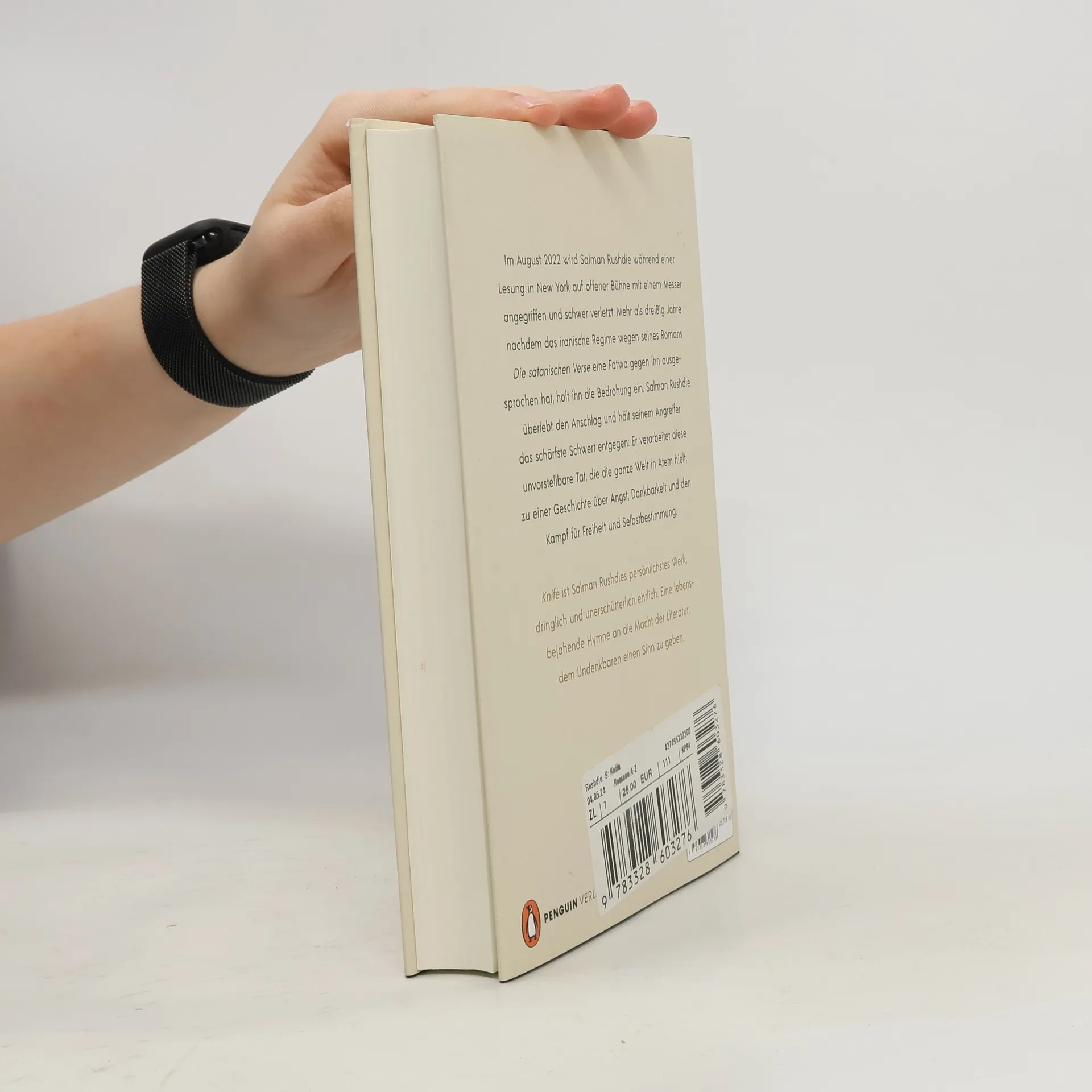 Das Weltereignis: Salman Rushdie erzählt die Geschichte des Attentats auf ihn und schafft daraus große Literatur Im August 2022 wird Salman Rushdie während einer Lesung auf offener Bühne mit einem Messer angegriffen und schwer verletzt. Mehr als dreißig Jahre nachdem das iranische Regime wegen seines Romans »Die satanischen Verse« eine Fatwa gegen ihn ausgesprochen hat, holt ihn die Bedrohung ein. Salman Rushdie überlebt den Anschlag und hält seinem Angreifer das schärfste Schwert entgegen: Er verarbeitet diese unvorstellbare Tat, die die ganze Welt in Atem hielt, zu einer Geschichte über Angst, Dankbarkeit und den Kampf für Freiheit und Selbstbestimmung. »Knife« ist Salman Rushdies persönlichstes Werk, dringlich und unerschütterlich ehrlich. Eine lebensbejahende Hymne an die Macht der Literatur, dem Undenkbaren einen Sinn zu geben.