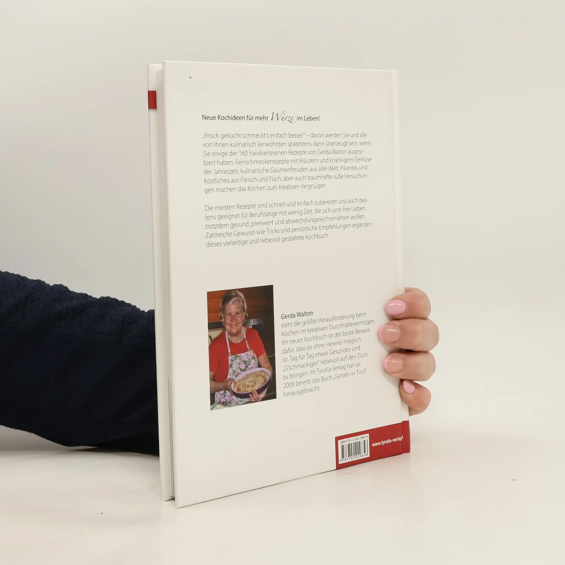 „Frisch gekocht schmeckt’s einfach besser“ – davon werden Sie und alle von Ihnen kulinarisch Verwöhnten spätestens dann überzeugt sein, wenn Sie einige der 200 handverlesenen Rezepte von Gerda Walton ausprobiert haben. Feinschmeckerrezepte mit Kräutern und kackigem Gemüse der Jahreszeit, kulinarische Gaumenfreuden aus aller Welt, Pikantes und Köstliches aus Fleisch und Fisch, aber auch traumhafte süße Versuchungen machen das Kochen zum kreativen Vergnügen. Die meisten Rezepte sind schnell und einfach zubereitet und auch bestens geeignet für Berufstätige, die sich und ihre Lieben trotz wenig Zeit gesund und abwechslungsreich ernähren wollen. Zahlreiche Gewusst-wie-Tricks, persönliche Empfehlungen und Tipps für den sorgsamen Umgang mit den vorwiegend heimischen Lebensmitteln ergänzen dieses vielseitige und liebevoll gestaltete Kochbuch.