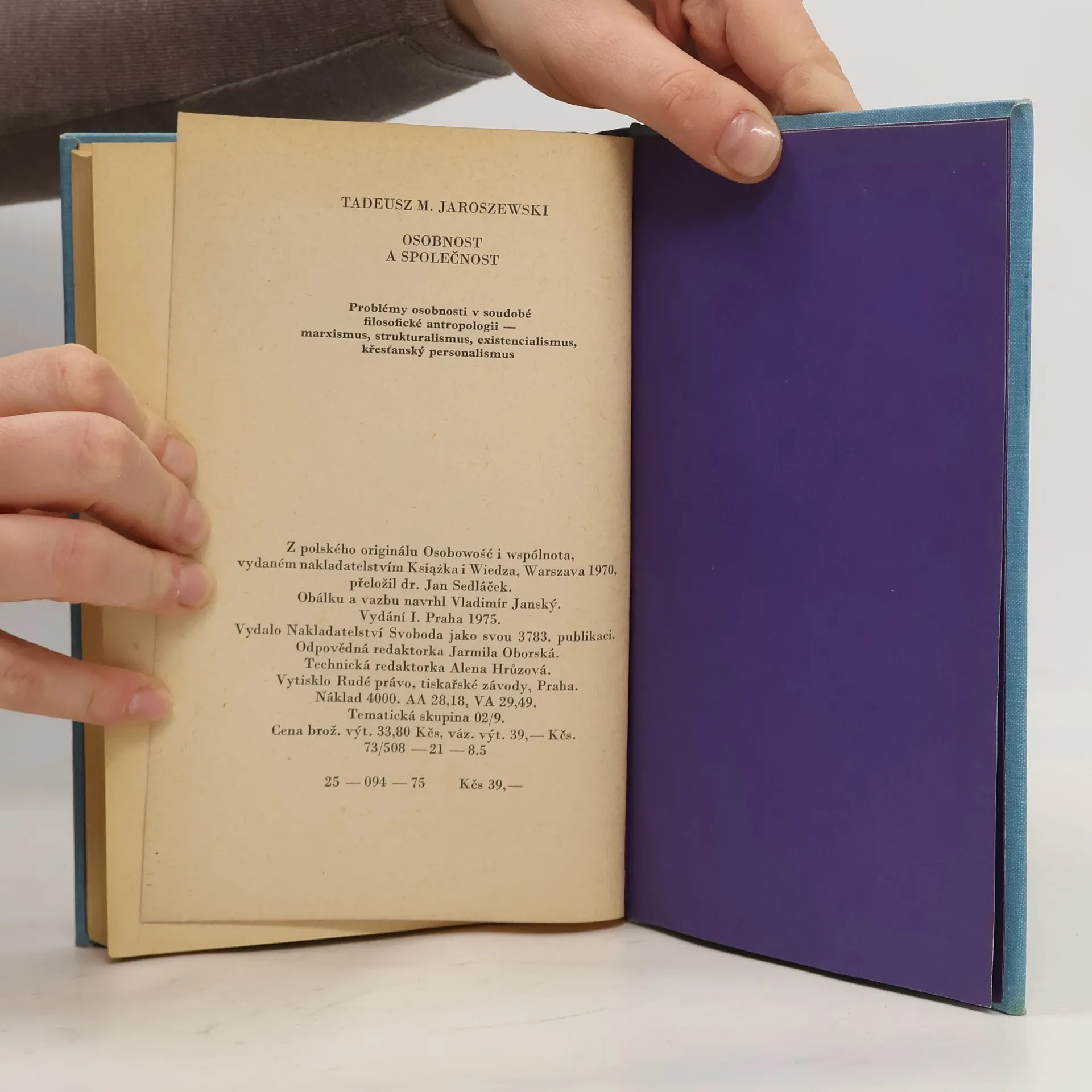 Osobnost a společnost. Problémy osobnosti v soudobé filosofické antropologii - marxismus, strukturalismus, existencionalismus, křesťanský personalismus, Tadeusz Maciej Jaroszewski, Jan Sedláček
