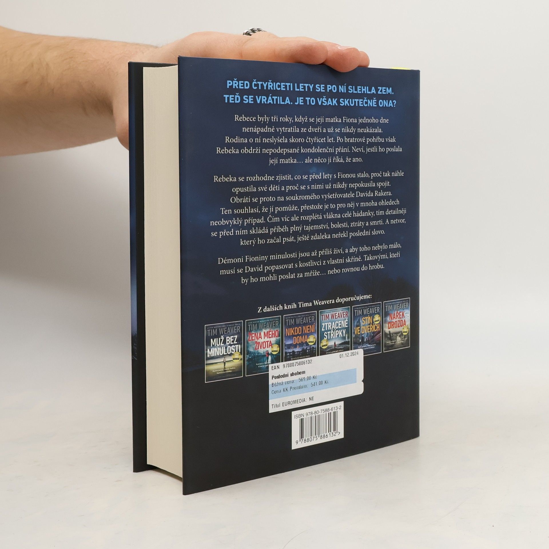PŘED ČTYŘICETI LETY SE PO NÍ SLEHLA ZEM. TEĎ SE VRÁTILA. JE TO VŠAK SKUTEČNĚ ONA? Rebece byly tři roky, když se její matka Fiona jednoho dne nenápadně vytratila ze dveří a už se nikdy neukázala. Rodina o ní neslyšela skoro čtyřicet let. Po bratrově pohřbu však Rebeka obdrží nepodepsané kondolenční přání. Neví, jestli ho poslala její matka… ale něco jí říká, že ano. Rebeka se rozhodne zjistit, co se před lety s Fionou stalo, proč tak náhle opustila své děti a proč se s nimi už nikdy nepokusila spojit. Obrátí se proto na soukromého vyšetřovatele Davida Rakera. Ten souhlasí, že jí pomůže, přestože je to pro něj v mnoha ohledech neobvyklý případ. Čím víc ale rozplétá vlákna celé hádanky, tím detailněji se před ním skládá příběh plný tajemství, bolesti, ztráty a smrti. A netvor, který ho začal psát, ještě zdaleka neřekl poslední slovo. Démoni Fioniny minulosti jsou až příliš živí, a aby toho nebylo málo, musí se David popasovat s kostlivci z vlastní skříně. Takovými, kteří by ho mohli poslat za mříže… nebo rovnou do hrobu.