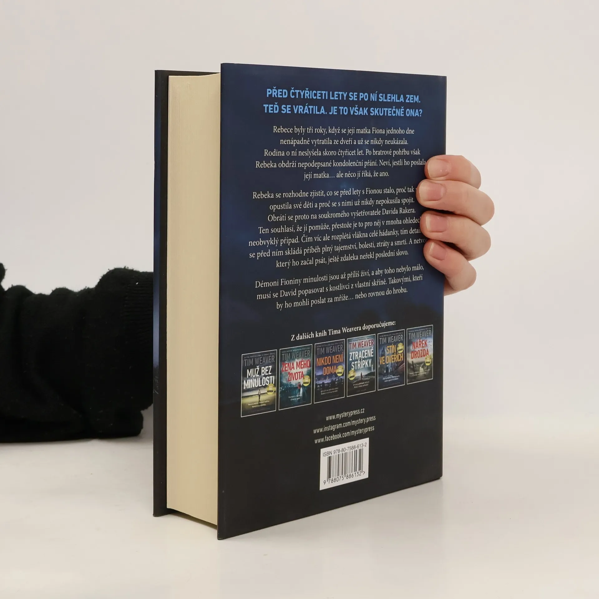 PŘED ČTYŘICETI LETY SE PO NÍ SLEHLA ZEM. TEĎ SE VRÁTILA. JE TO VŠAK SKUTEČNĚ ONA? Rebece byly tři roky, když se její matka Fiona jednoho dne nenápadně vytratila ze dveří a už se nikdy neukázala. Rodina o ní neslyšela skoro čtyřicet let. Po bratrově pohřbu však Rebeka obdrží nepodepsané kondolenční přání. Neví, jestli ho poslala její matka… ale něco jí říká, že ano. Rebeka se rozhodne zjistit, co se před lety s Fionou stalo, proč tak náhle opustila své děti a proč se s nimi už nikdy nepokusila spojit. Obrátí se proto na soukromého vyšetřovatele Davida Rakera. Ten souhlasí, že jí pomůže, přestože je to pro něj v mnoha ohledech neobvyklý případ. Čím víc ale rozplétá vlákna celé hádanky, tím detailněji se před ním skládá příběh plný tajemství, bolesti, ztráty a smrti. A netvor, který ho začal psát, ještě zdaleka neřekl poslední slovo. Démoni Fioniny minulosti jsou až příliš živí, a aby toho nebylo málo, musí se David popasovat s kostlivci z vlastní skříně. Takovými, kteří by ho mohli poslat za mříže… nebo rovnou do hrobu.