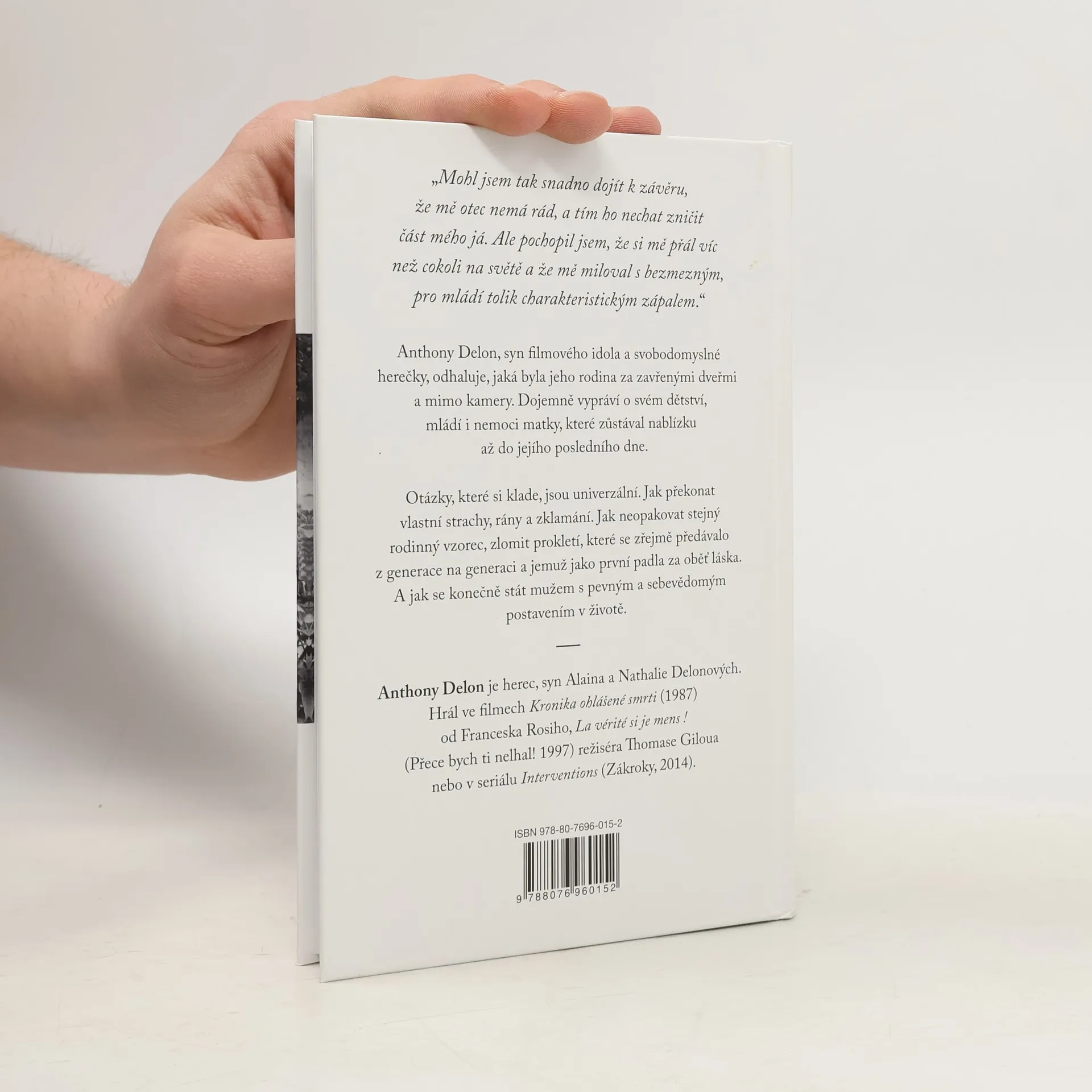 „Mohl jsem tak snadno dojít k závěru, že mě otec nemá rád, a tím ho nechat zničit část mého já. Ale pochopil jsem, že si mě přál víc než cokoli na světě a že mě miloval s bezmezným, pro mládí tolik charakteristickým zápalem.“ Anthony Delon, syn filmového idola a svobodomyslné herečky, odhaluje, jaká byla jeho rodina za zavřenými dveřmi a mimo kamery. Dojemně vypráví o svém dětství, mládí i nemoci matky, které zůstával nablízku až do jejího posledního dne. Otázky, které si klade, jsou univerzální. Jak překonat vlastní strachy, rány a zklamání. Jak neopakovat stejný rodinný vzorec, zlomit prokletí, které se zřejmě předávalo z generace na generaci a jemuž jako první padla za oběť láska. A jak se konečně stát mužem s pevným a sebevědomým postavením v životě. Anthony Delon je herec, syn Alaina a Nathalie Delonových. Hrál ve filmech Kronika ohlášené smrti (1987) od Franceska Rosiho, La vérité si je mens ! (Přece bych ti nelhal! 1997) režiséra Thomase Giloua nebo v seriálu Interventions (Zákroky, 2014).