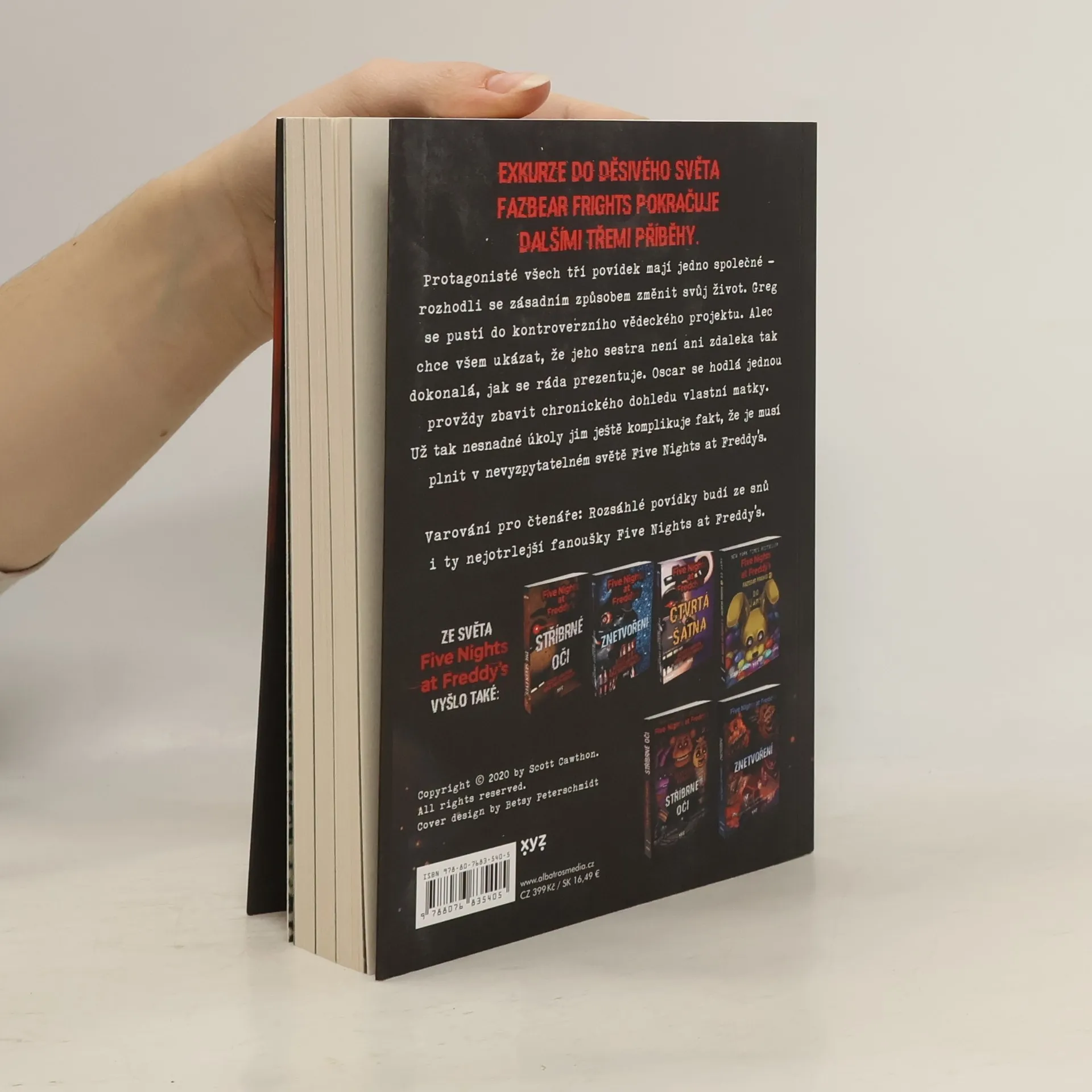 Exkurze do děsivého světa Fazbear Frights pokračuje dalšími třemi příběhy. Greg, Alec a Oscar už toho mají dost – po letech plných příkoří se rozhodli zcela změnit svůj život. Greg se pustí do více než kontroverzního experimentu. Alec hodlá před světem odhalit, že jeho sestra není tak dokonalá, jak si všichni myslí. A Oscar se chce jednou provždy zbavit obsesivního dohledu své matky. Už tak nesnadné úkoly jim ještě komplikuje fakt, že je musí plnit v nevyzpytatelném světě Five Nights at Freddys. Varování pro čtenáře: Rozsáhlé povídky budí ze snů i ty nejotrlejší fanoušky Five Nights at Freddys.