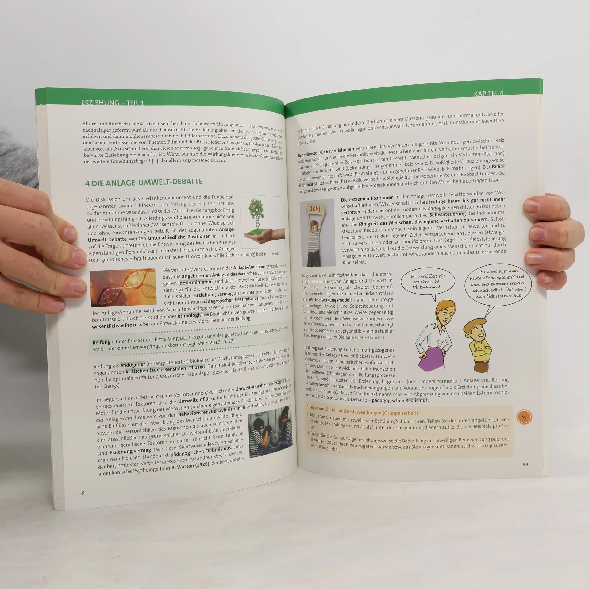 PÄDAGOGIK elementar wurde komplett neu für BAfEP konzipiert. Die Reihe knüpft immer wieder an vorhandenes Wissen an, um den Bezug zur Lebenswelt der Schülerinnen und Schüler zu verdeutlichen. Die Inhalte werden dem Lehrplan entsprechend schrittweise vertieft. Ein besonderes Augenmerk von PÄDAGOGIK elementar liegt auf Aktualität und Praxisbezug. Daher wird in den abwechslungsreichen Arbeitsaufträgen immer wieder mit aktueller Literatur gearbeitet und auf handlungsorientiertes Arbeiten Wert gelegt. Um die Schülerinnen und Schüler beim Verstehen immer komplexerer wissenschaftlicher Texte zu unterstützen, wird in PÄDAGOGIK elementar schrittweise Fachsprache aufgebaut. Fachbegriffe sind farblich markiert und werden zusätzlich in alphabetischen „Vokabellisten“ am Ende jedes Kapitels angeführt. Die Listen stehen auch kostenlos zum Download zur Verfügung, um sie individuell, etwa für Lernkärtchen, adaptieren zu können. Knüpft an das Vorwissen der Schülerinnen und Schüler an Legt Wert auf die Zusammenarbeit der Fächer „Pädagogik“, „Didaktik“ und „Praxis“ Bietet demzufolge Anregungen zum fächerübergreifenden Unterricht Regt zur Arbeit mit aktueller Literatur und zum kontinuierlichen Aufbau eines Fachwortschatzes an Bereitet optimal auf die Reife- und Diplomprüfung vor